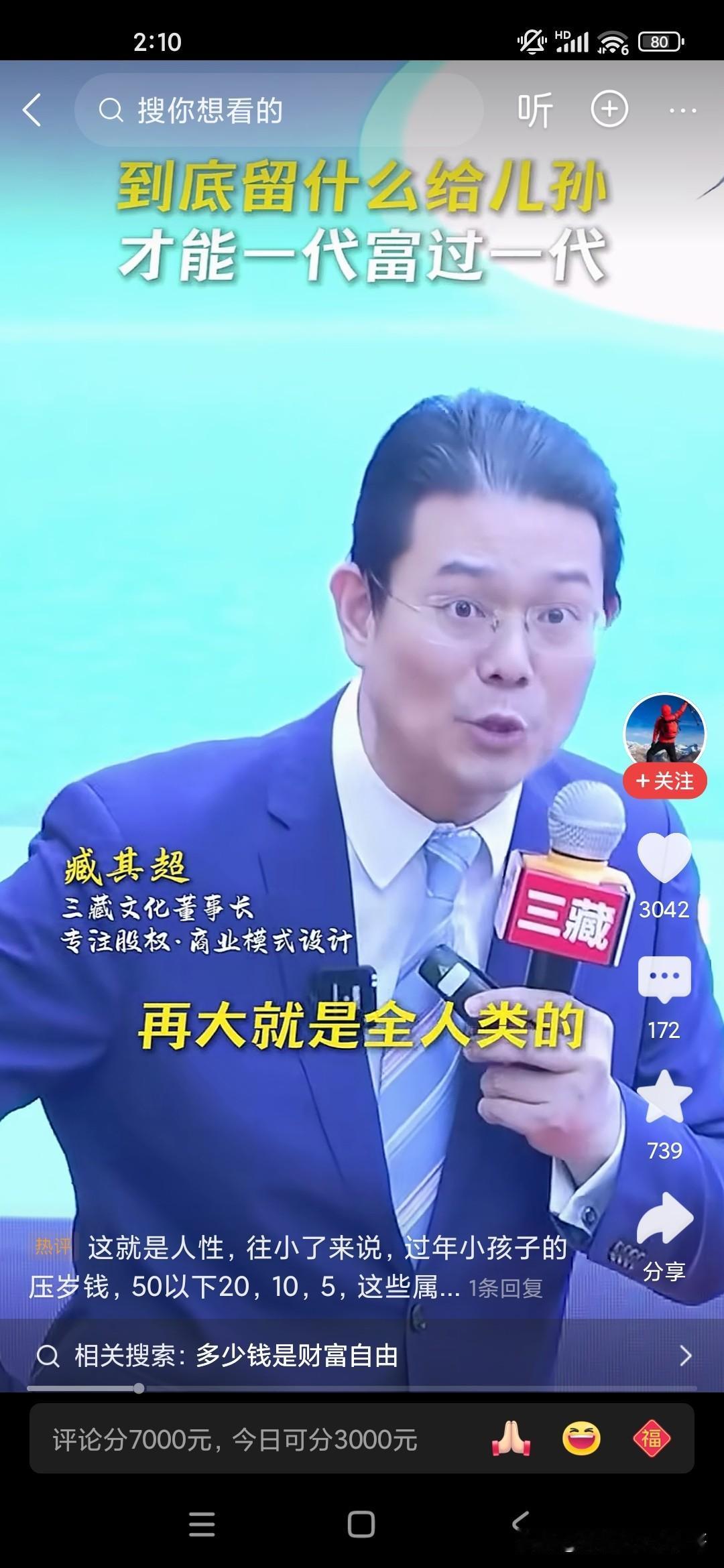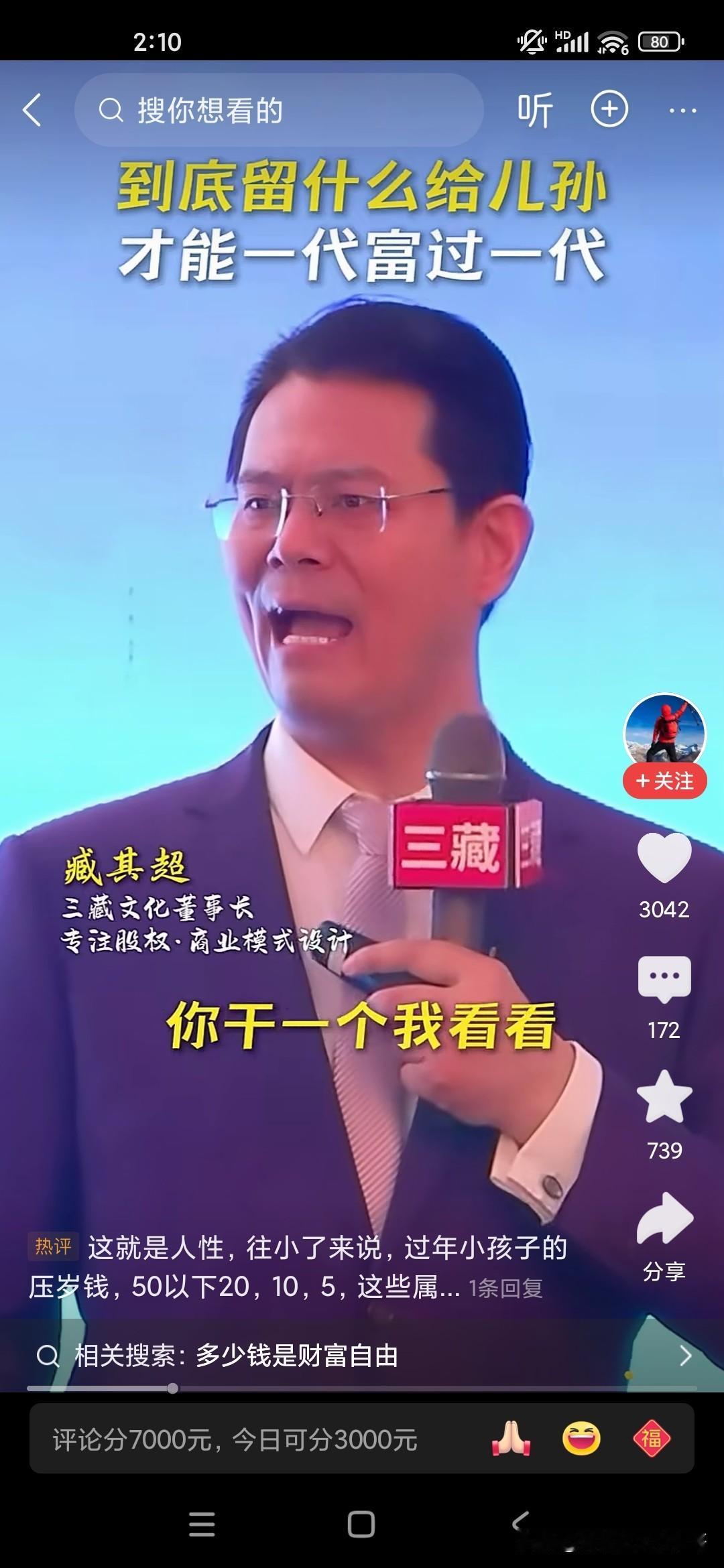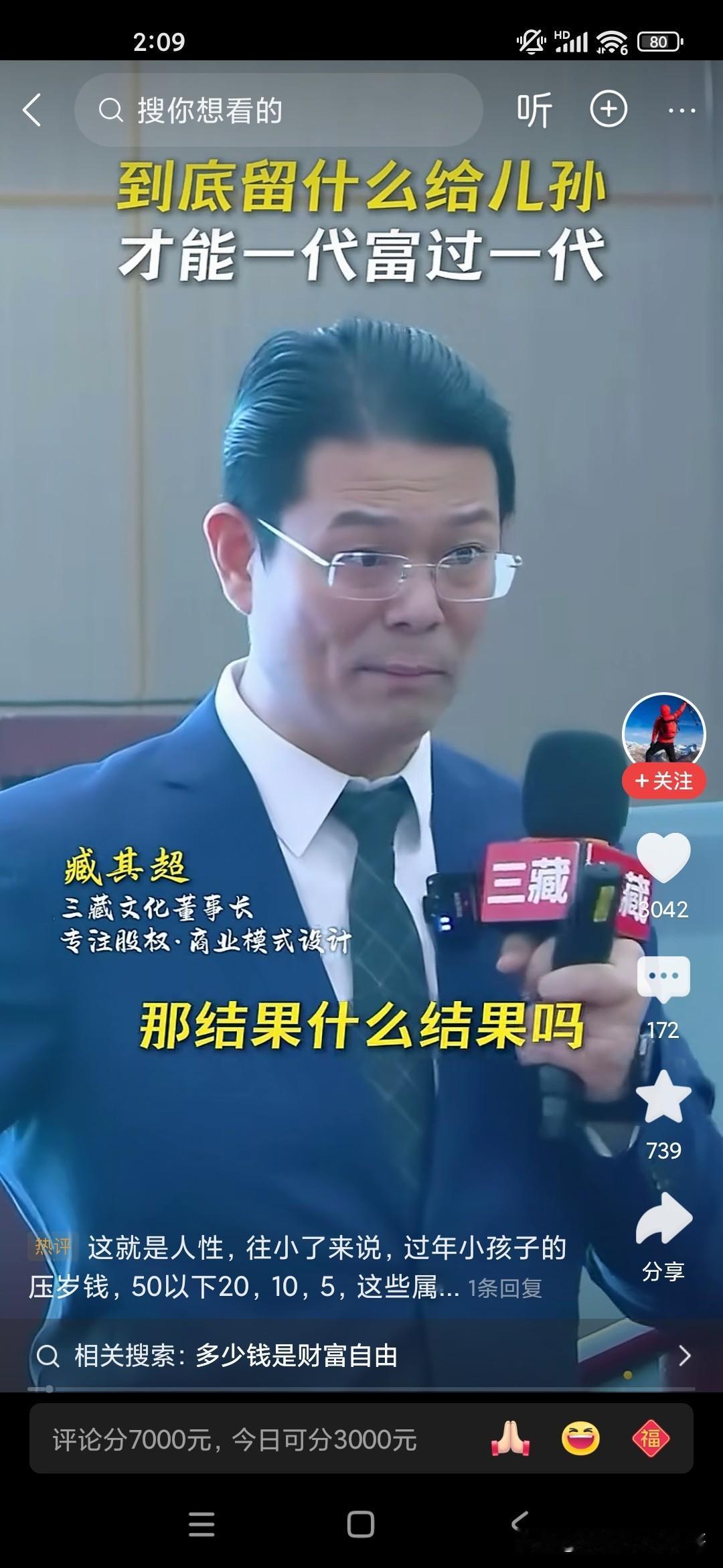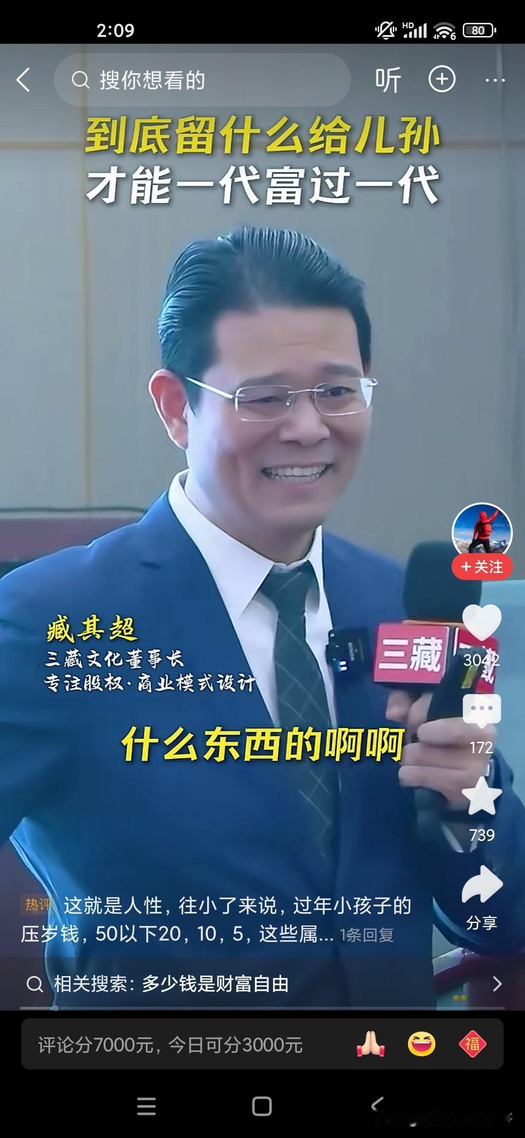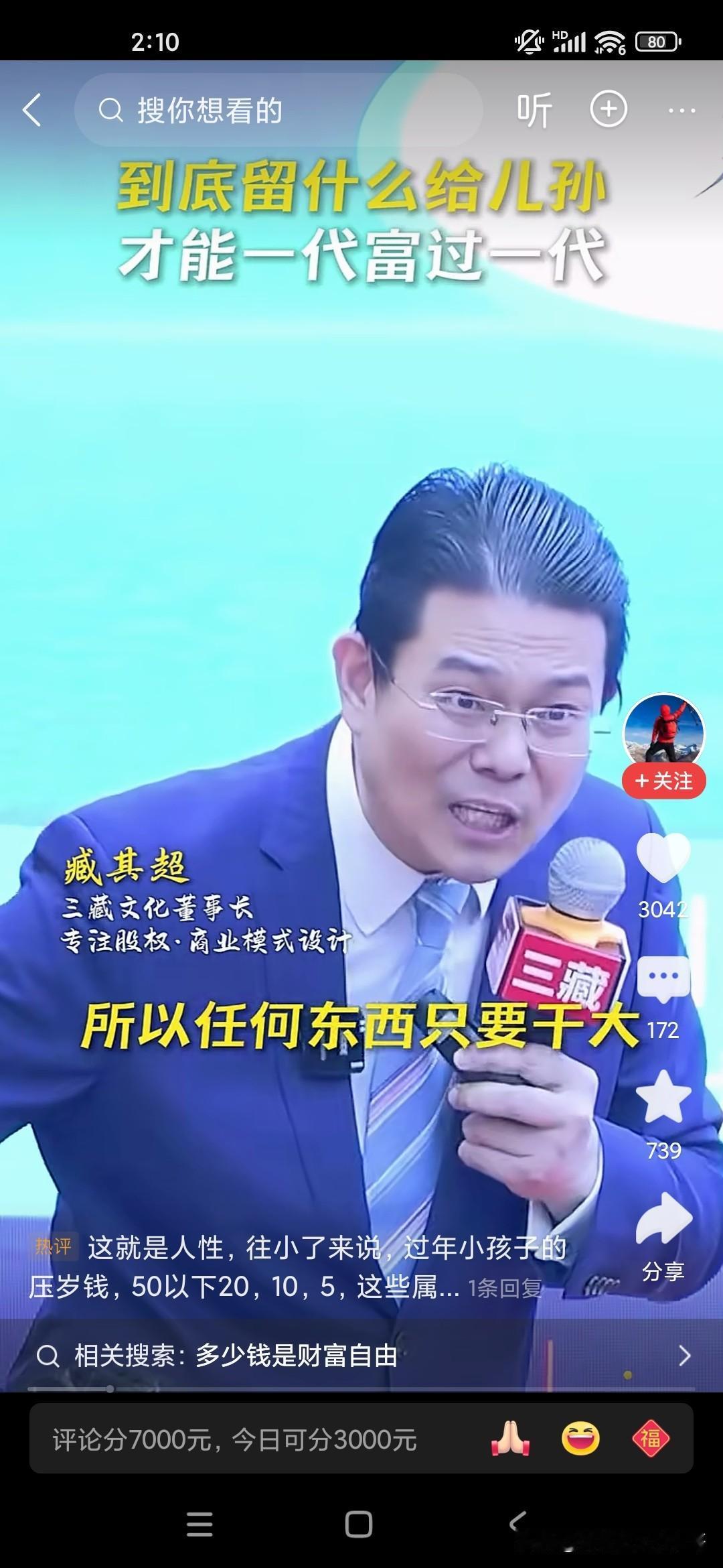 从古至今,只要你是全国首富,基本上没有什么好下场,无论是清末的胡雪原还是盛宣怀,盛宣怀的儿子甚至饿死了,还是现在的什么首富,他说什么马什么驴,然后的话也没有什么特别好的下场,所以说他都说只有你把企业搞得规模稍微小一点,小富一点是可以的,但是不要太富,太过于富有的话,可能就不是你的了,是大家伙了,只有你把它搞得小,而且有亏可能才是自己的,他其实也引发了一个思考,那就是说我们应该赚多少钱以及留给子孙后代什么样的财富才算是比较合适!