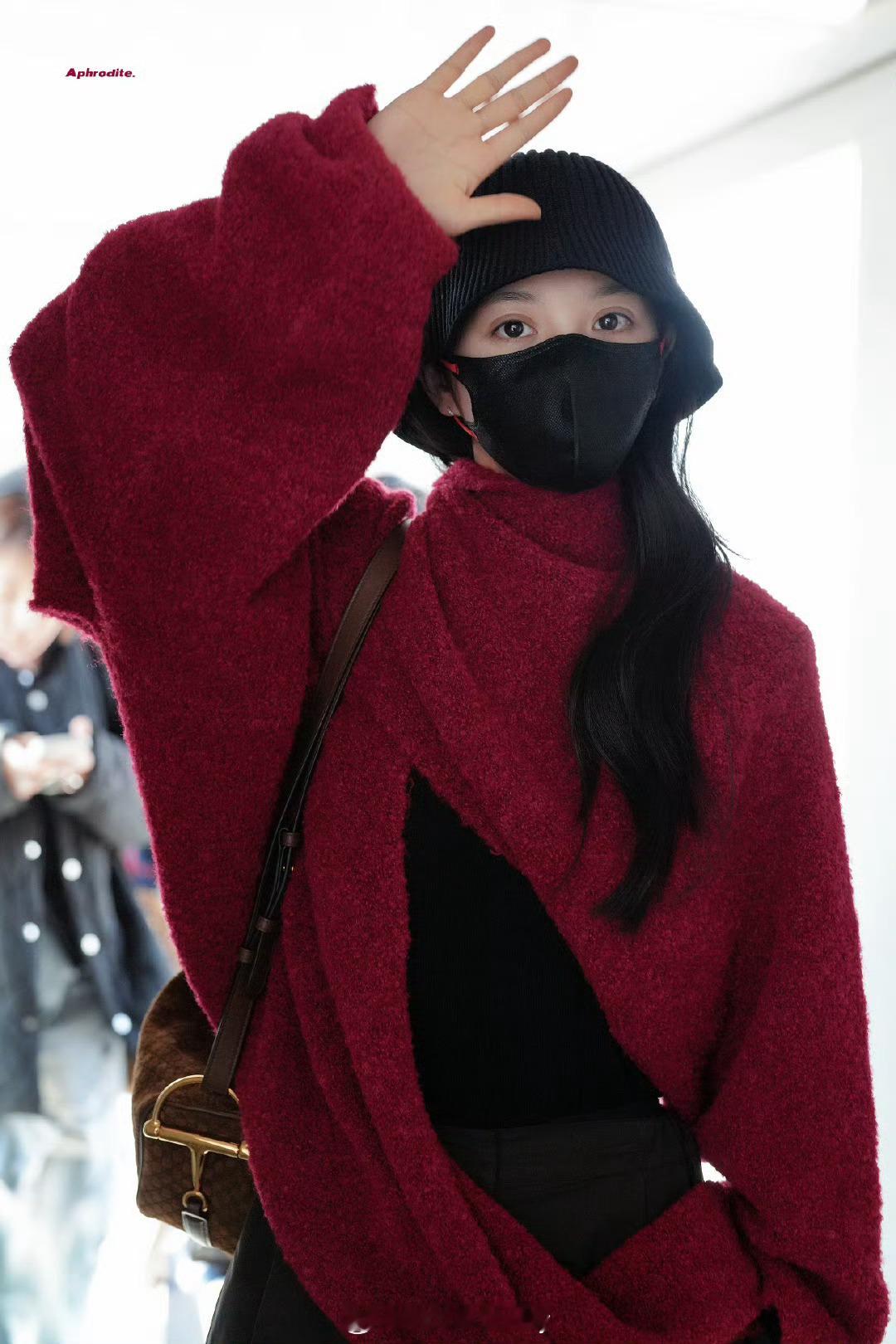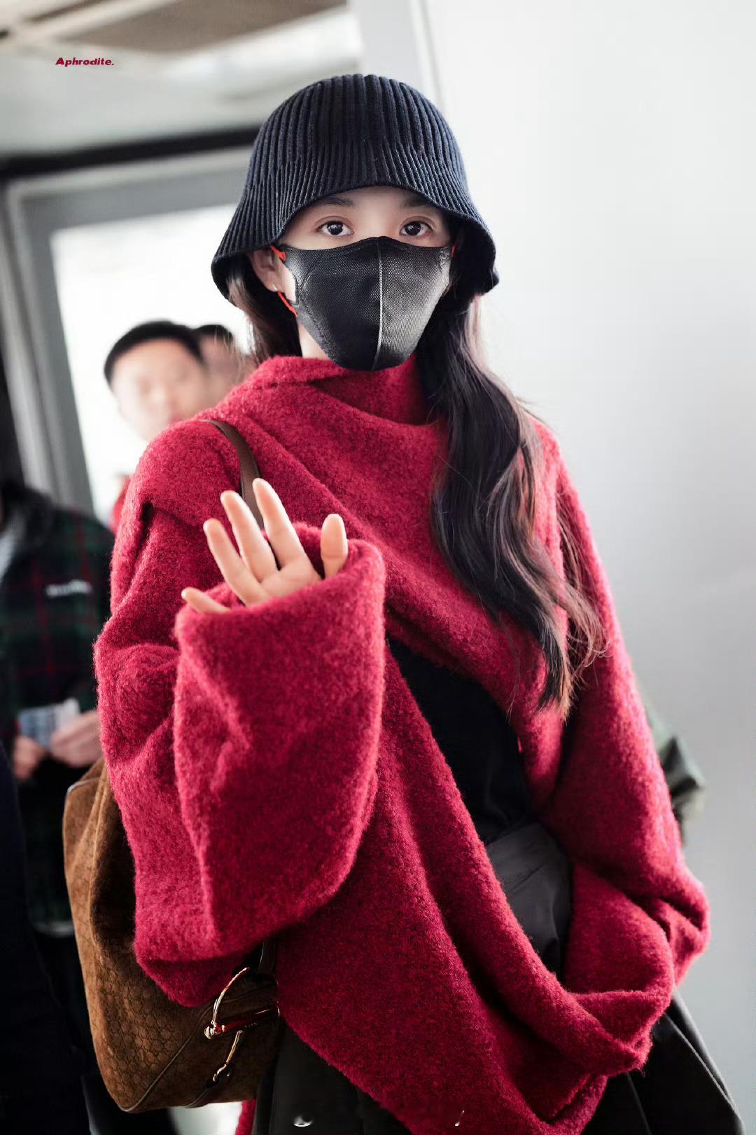 今天机场红毛衣的田曦薇!进组啦