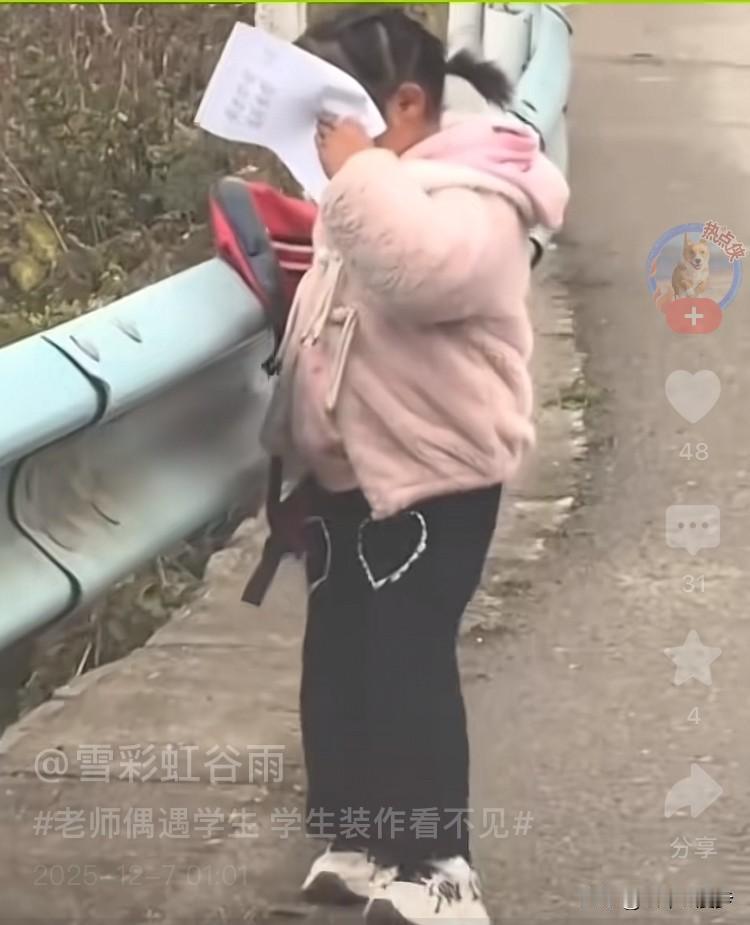 刚刷到个视频,老师返校路上碰到自己的学生,小姑娘拿东西捂着脸假装没看见老师,这画面被网友笑称是“掩耳盗铃”的现实版,也让不少人想起学生时代偶遇老师的同款反应。 巧的是,我在教学楼里也总碰到读高三的侄女。有回在楼梯上撞见她,她居然单手捂着眼,假装看不见我。我当时又气又笑:气的是咱们是亲戚,跟一家人似的,她都十六七岁了,怎么见了我还躲?是害羞还是怕生?真担心她这样以后步入社会可怎么好;笑的是,这掩耳盗铃的举动,她还真做得出来。 当学生偶遇老师 课堂里的小惊喜 偷偷带手机进校 课堂尴尬时刻 路遇老师 进教室接娃 校园里兜风
