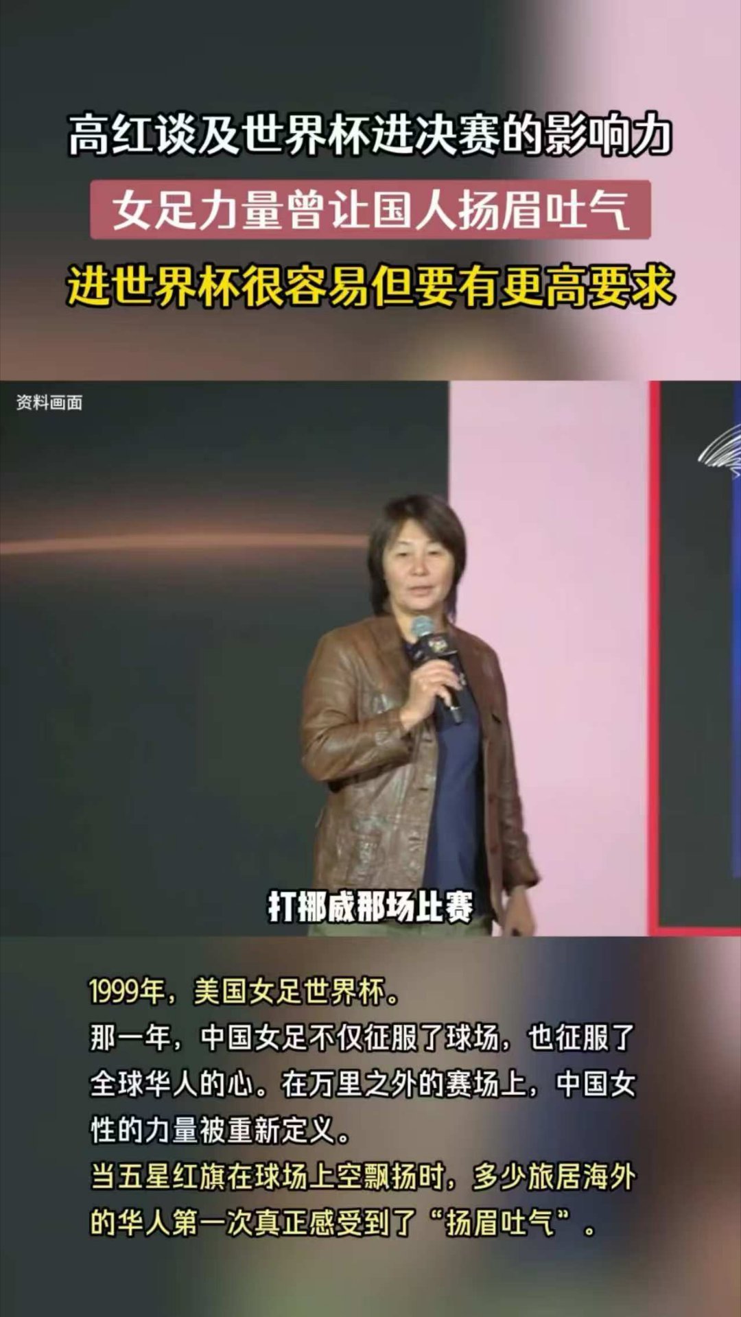 高红说女足力量曾让国人扬眉吐气前女足队长高红的话直击人心!她表示女足曾凭实力让国人扬眉吐气,也直言中国女足进军世界杯本是水到渠成。这份底气来之不易,是女足姑娘们用无数个日夜的坚持与拼搏,一点点攒下的属于中国女足的荣光。前女足队长称中国女足进世界杯很容易
