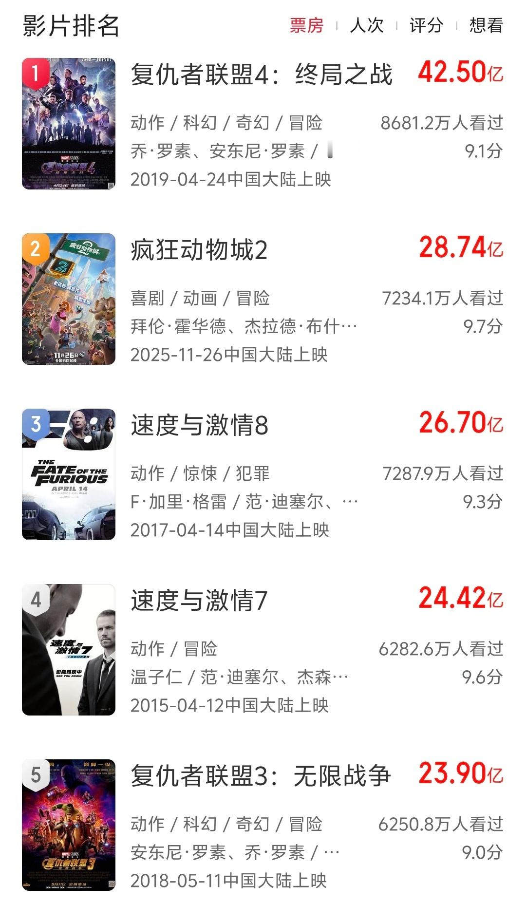《疯狂动物城2》中国内地上映12天总票房破28亿,超过《速度与激情8》成中国影史进口片票房榜第二高电影!