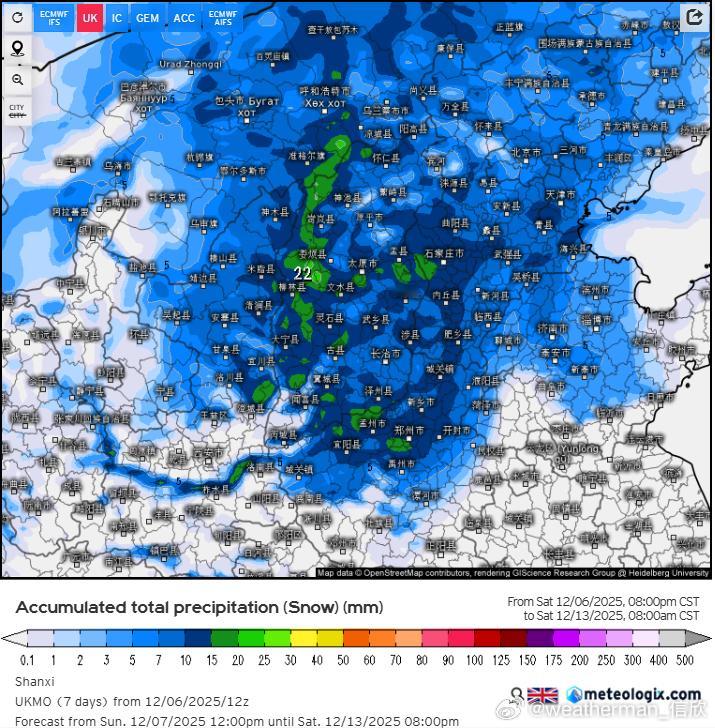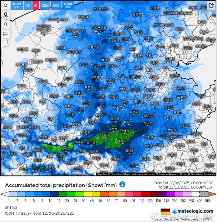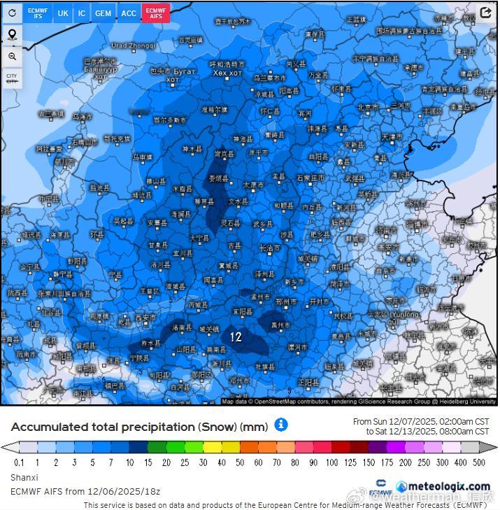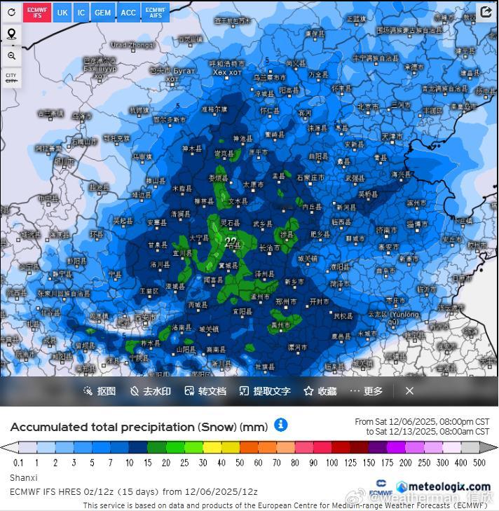 大雪 【小雪欠账 大雪补上】今年小雪节气期间,我国大部地区降水偏少,全国平均降水量不足2毫米,偏少72.2%,为1961年以来同期第四少,河南和天津为最少。主要是因为缺少水汽,空气太干燥。小雪期间全国平均相对湿度53.4%,创同期最干燥纪录,青海宁夏湖北湖南江西也经历了最干燥的小雪节气。因为缺少水汽,下雪成了无米之炊。本该在小雪期间见到初雪的华北一带,初雪迟到。不过小雪节气的欠账,有望在大雪节气补上。12日前后华北等地水汽条件明显改善,叠加寒潮东移南下,将出现较大范围的降雪。图5-9为欧洲、欧洲AI、英国、德国、加拿大模式给出的到13日08时的累计降雪量预报。