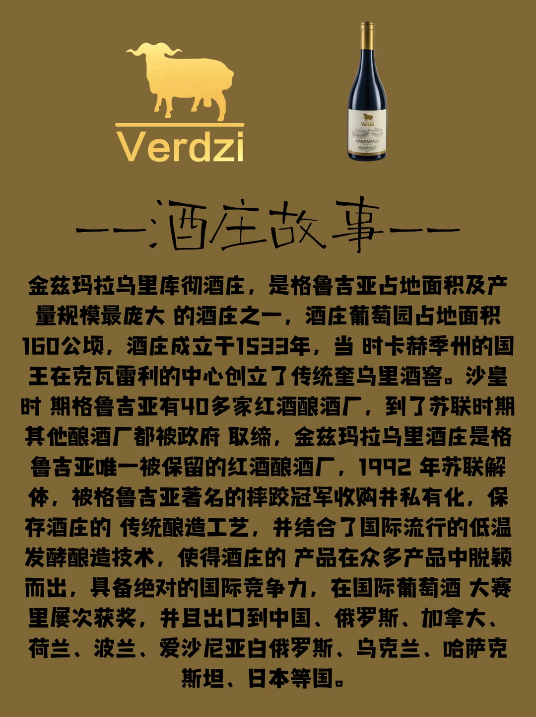 [庆祝R]金兹玛拉乌里库彻酒庄,是格鲁吉亚占地面积及产量规模最庞大 的酒庄之一,在当地家喻户晓。超高性比价 轻松易饮。