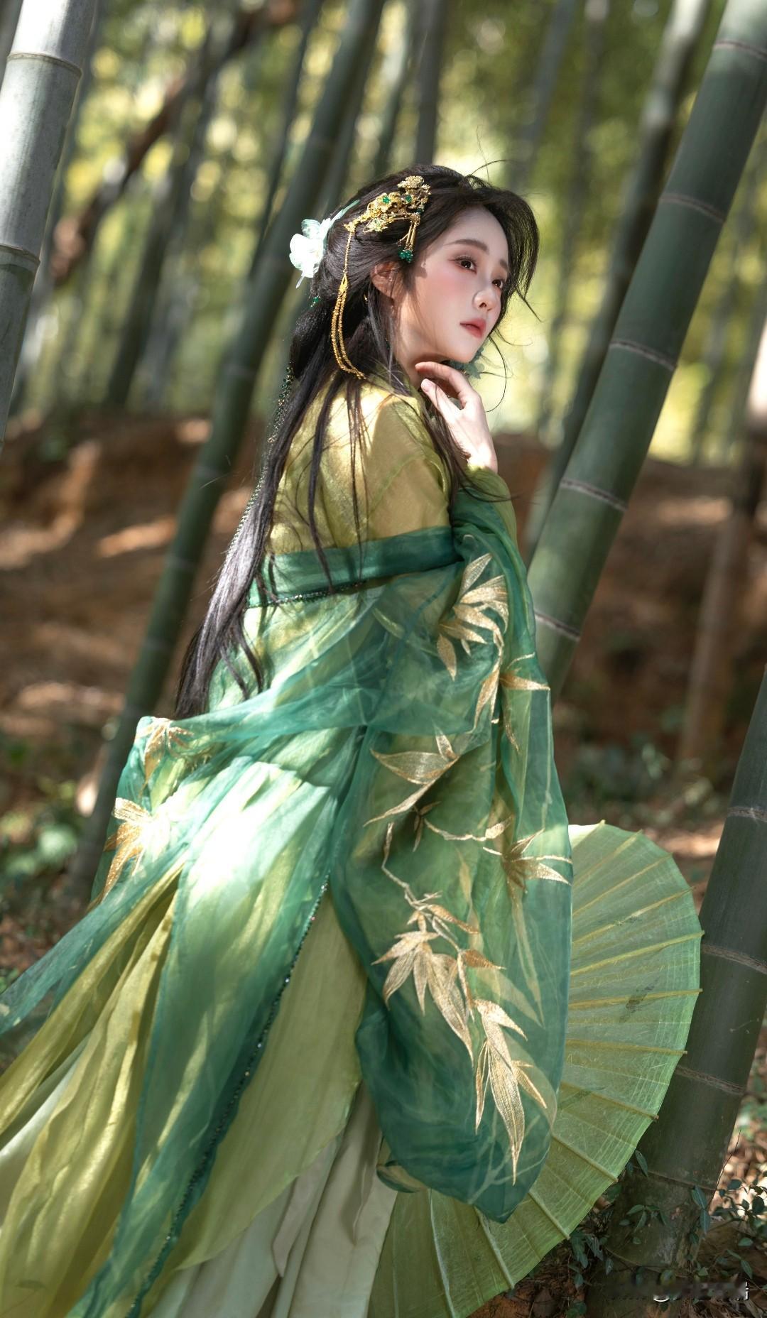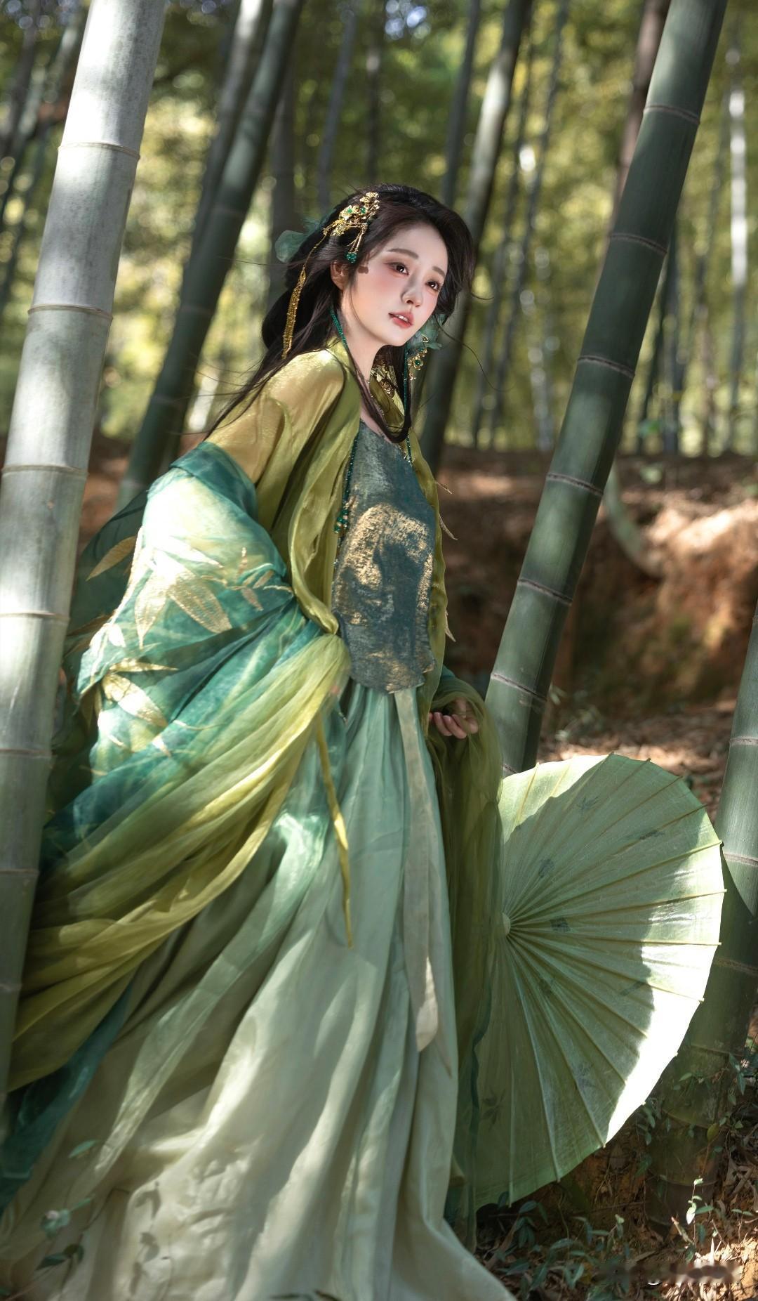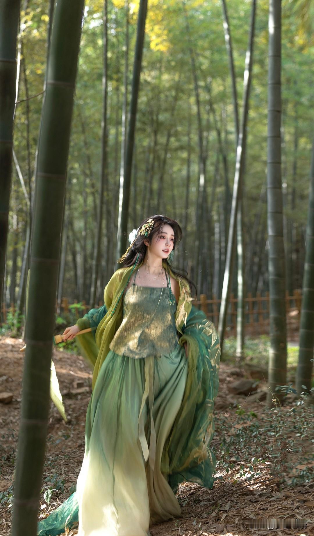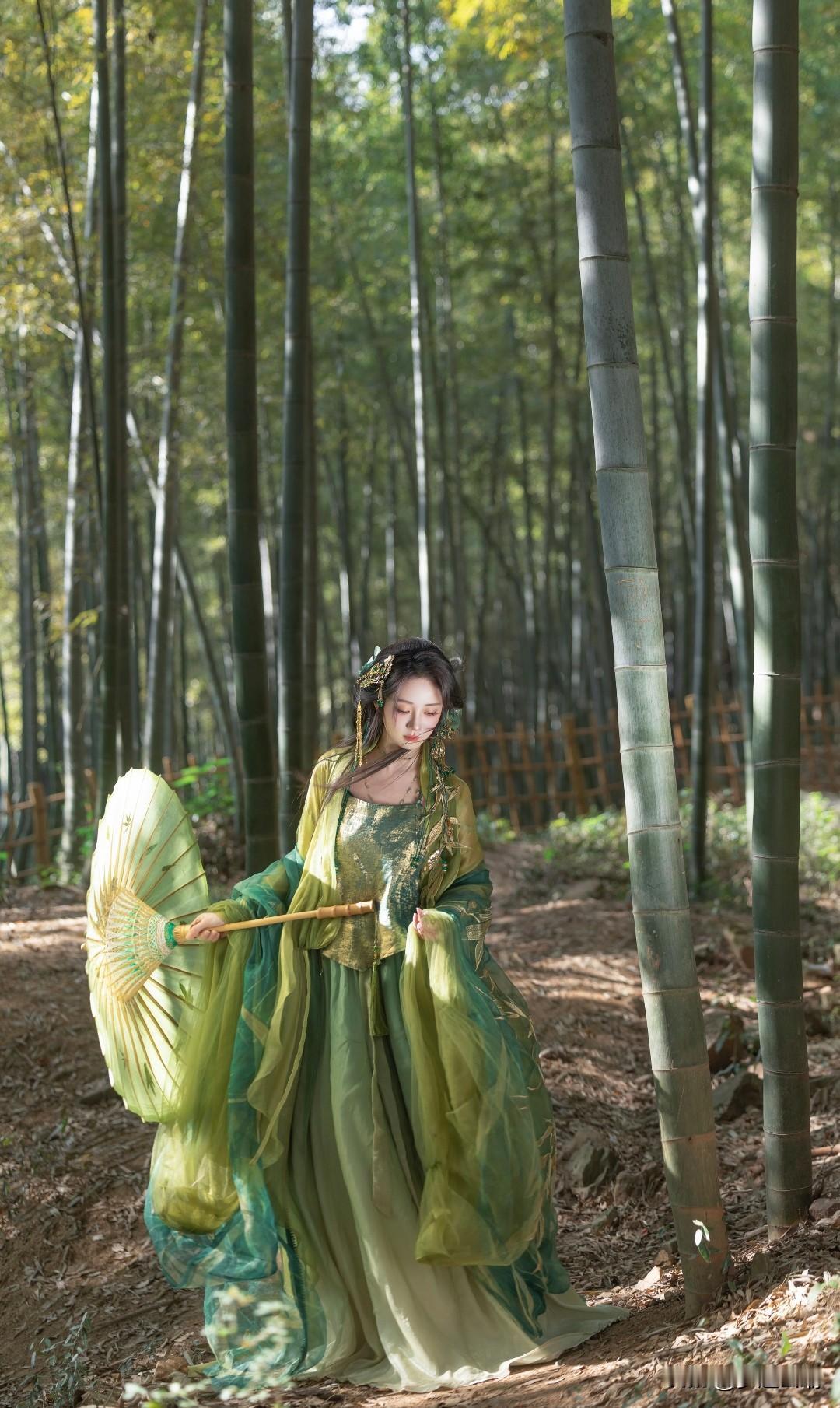 竹林仙子,绿衣飘飘,古风韵味十足!
