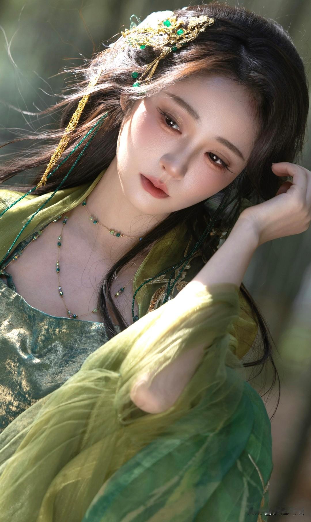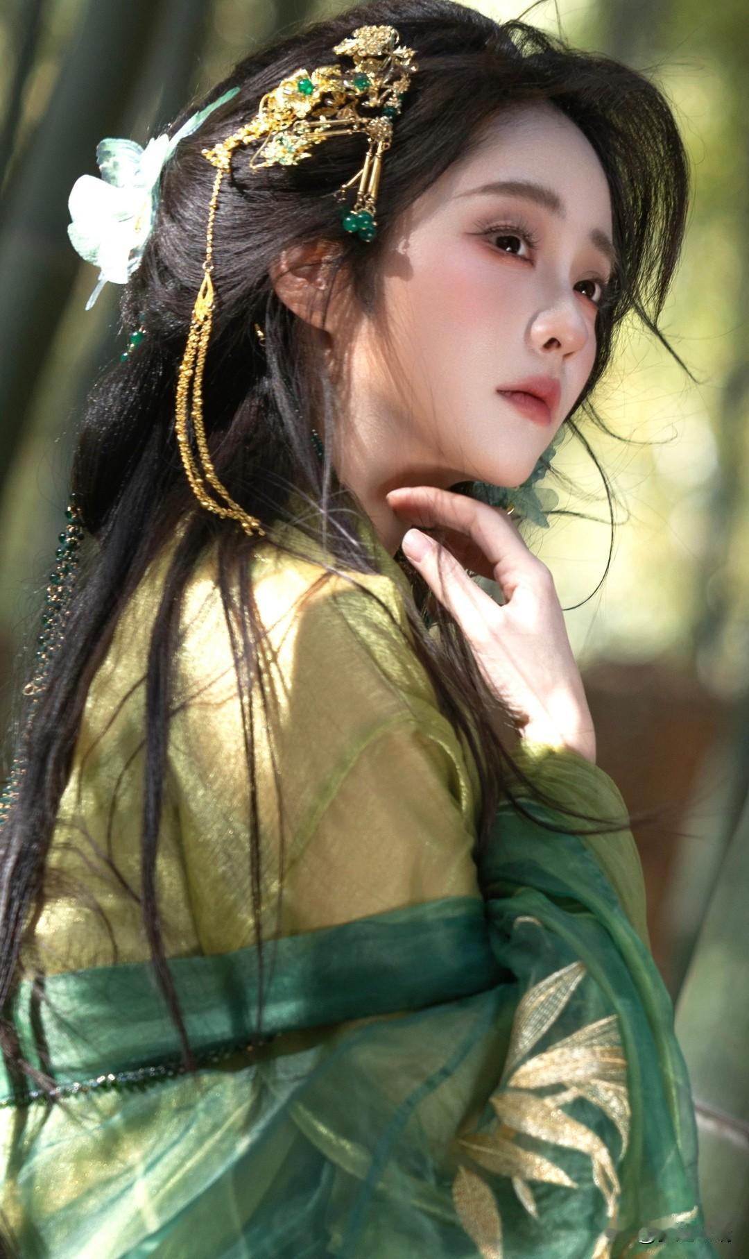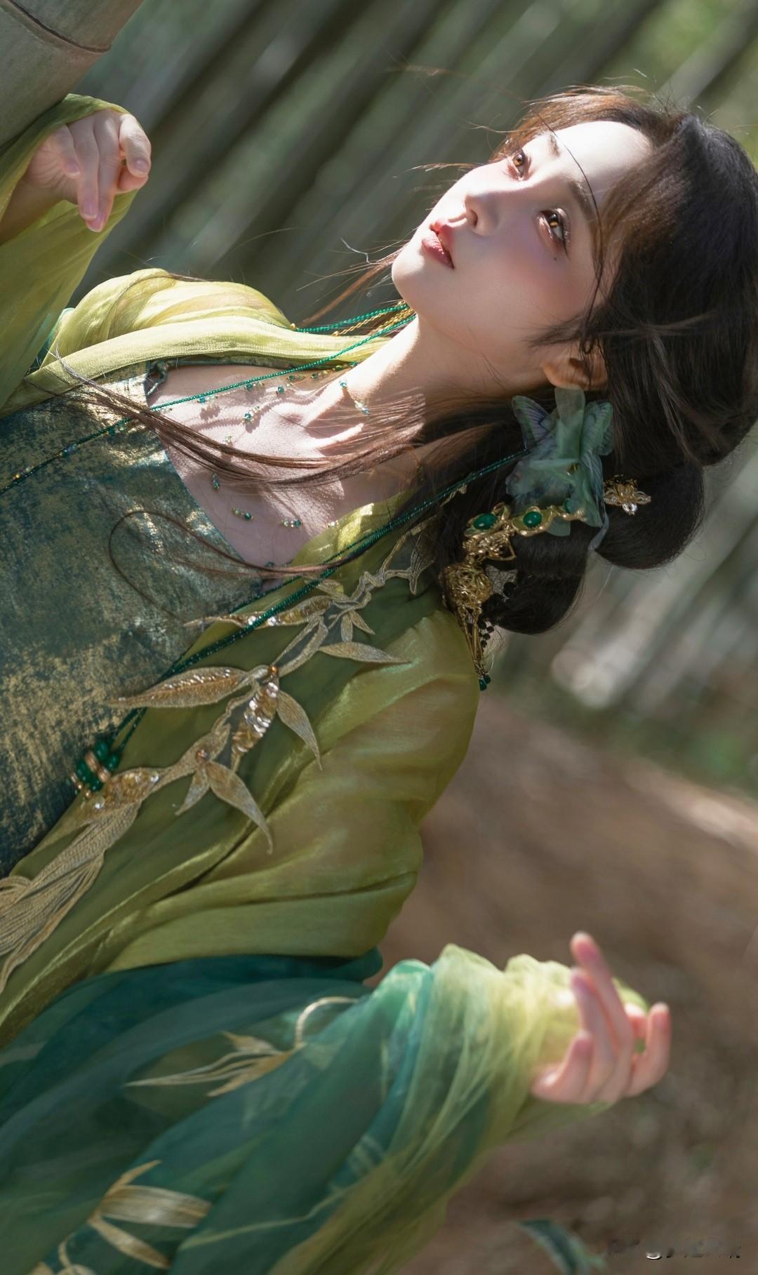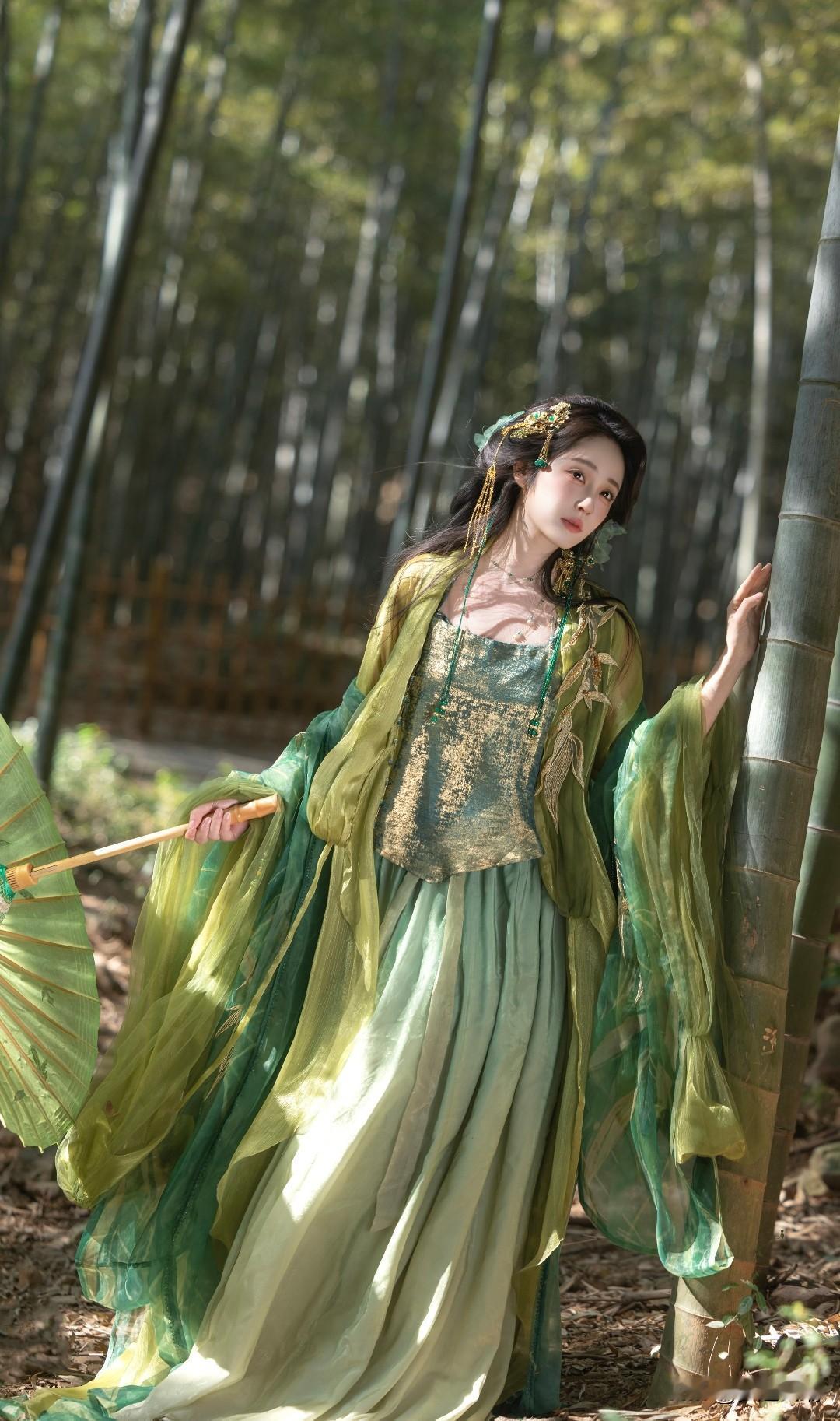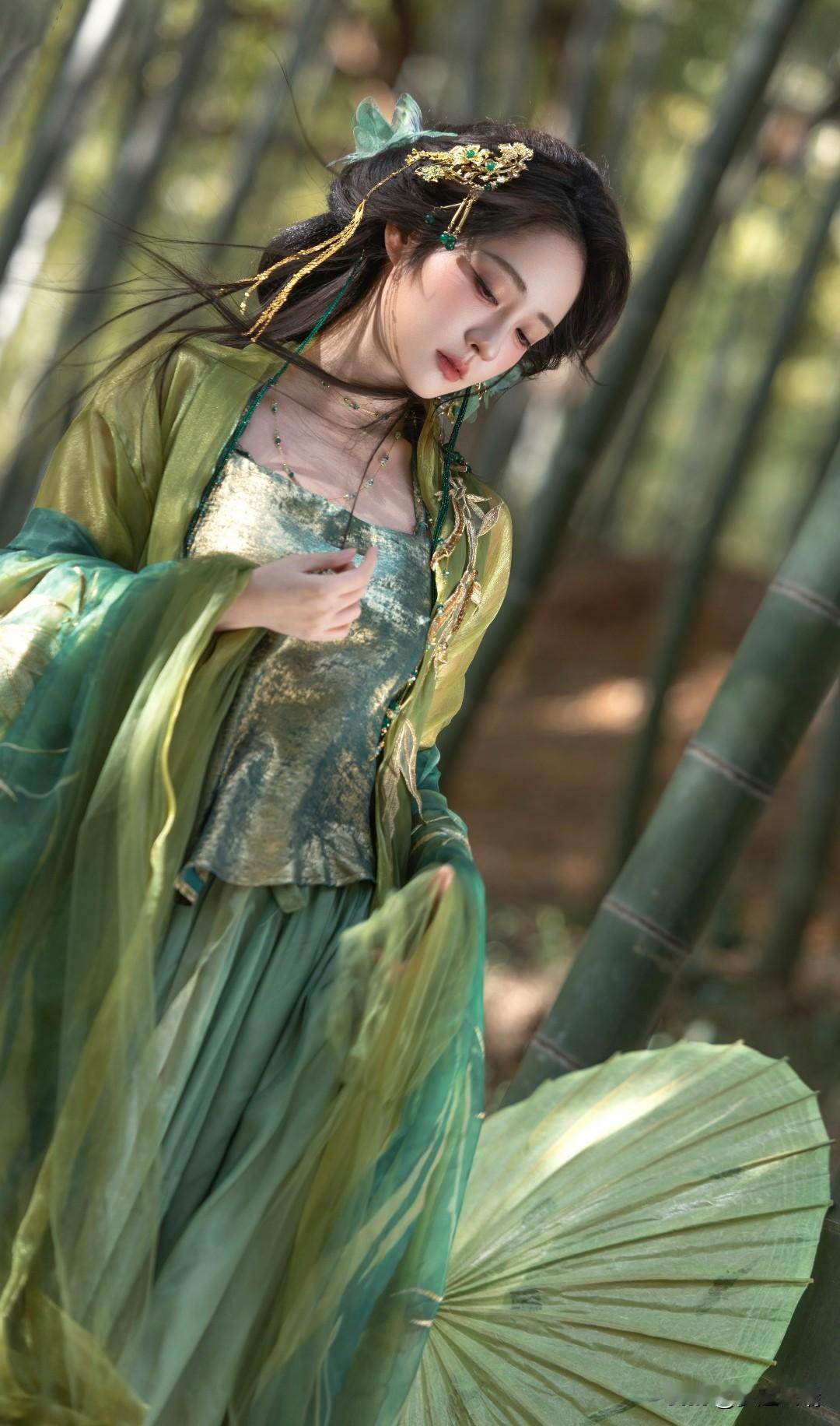 竹林仙子,绿衣飘飘,古风韵味十足!