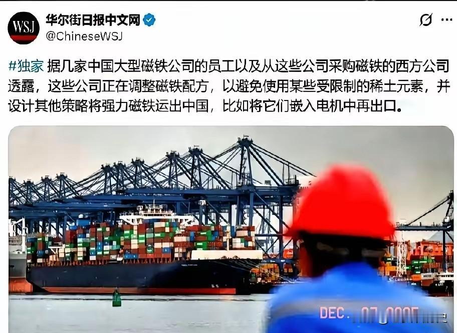 内鬼防不胜防啊! 《华尔街日报》近日披露了咱国公司绕过稀土管制的手段,其中包括改配方、将强力磁铁藏于电机中等做法。 据《华尔街日报》报道,这些信息来源于对咱国内部人士及其西方客户的采访。 这篇报道,味道有点冲。 它说咱中国稀土企业“规避”管制,用“降规版”磁铁继续向西方供货。话里话外,把我们合法合规的技术创新和商业调整,描得跟搞小动作似的。 “降规版”是什么?其实就是企业为了应对市场变化,主动研发的新产品。 从今年4月起,含镝、铽等重稀土的磁体出口需要申请许可证,流程可能长达数周。为了不影响客户,企业就加速研发不含这些受限元素的新型磁体。比如,通过把材料研磨到极细来提升耐热性,这类磁体能在约150摄氏度下工作,满足很多家电需求。 这叫“上有政策,下有对策”吗?恰恰相反,这分明是“市场有需求,企业有响应”。 有中国企业销售人员在社交媒体上说得很实在:“无法使用(受限元素)确实会让耐高温性能稍弱些,但对大多数客户而言,有的用总比完全没有好。” 企业是在规则内,用技术手段解决问题,维持供应链运转,这何错之有? 真正该警惕的“内鬼”,根本不是这些阳光下的企业。 而是那些见利忘义,真正在搞非法勾当的蛀虫。国家安全机关早就披露,境外势力勾连境内不法分子,用伪报品名、夹藏私货、第三国转运等走私手段,妄图窃取我们的战略资源。有案例显示,他们甚至把稀土粉末混进瓷砖原料,或者灌入塑料模特里偷运。 和这些地下的“鬼”相比,台面上企业的技术调整,清清白白。 中国稀土集团这样的行业龙头,已明确将“严格落实出口管制政策,依法合规开展工作”列为核心任务。我们的管制政策也在不断升级完善,不仅管实物出口,还管技术渗透,构建“全链条治理”。 《华尔街日报》的报道,选择性地放大了企业正常的商业行为,却对真正危害国家安全的走私黑产网轻轻带过。 这种叙事,难免让人怀疑其动机——是把水搅浑,为某些国家继续获取资源打掩护?还是想离间我们政企关系,唱衰我们的管制政策? 资源博弈是大国竞争的常态。 有评论指出,中国完善稀土出口管制体系,是依法依规的正常行为。核心目的就两个:维护国家安全,推动产业升级。 把初级资源卖个土价钱的时代过去了,我们要掌握的是高附加值环节的话语权。 所以,别被带了节奏。 要防的“内鬼”,是那些走私犯和窃密者。对于在合规路上创新求存的企业,该支持时还得支持。把自家的篱笆扎紧,同时把产业的高楼筑稳,这场博弈的主动权才能牢牢握在自己手里。 各位读者你们怎么看?欢迎在评论区讨论。