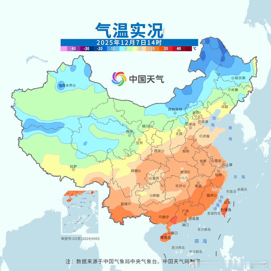 【气温】今天冷空气影响偏北的区域,宁夏、内蒙古、陕西北部、山西北部、河北北部、辽宁、吉林、黑龙江等地出现降温。而黄河以南多地,气温依然明显偏高,江南南部和华南大部气温超20℃。大雪节气大暖开局。