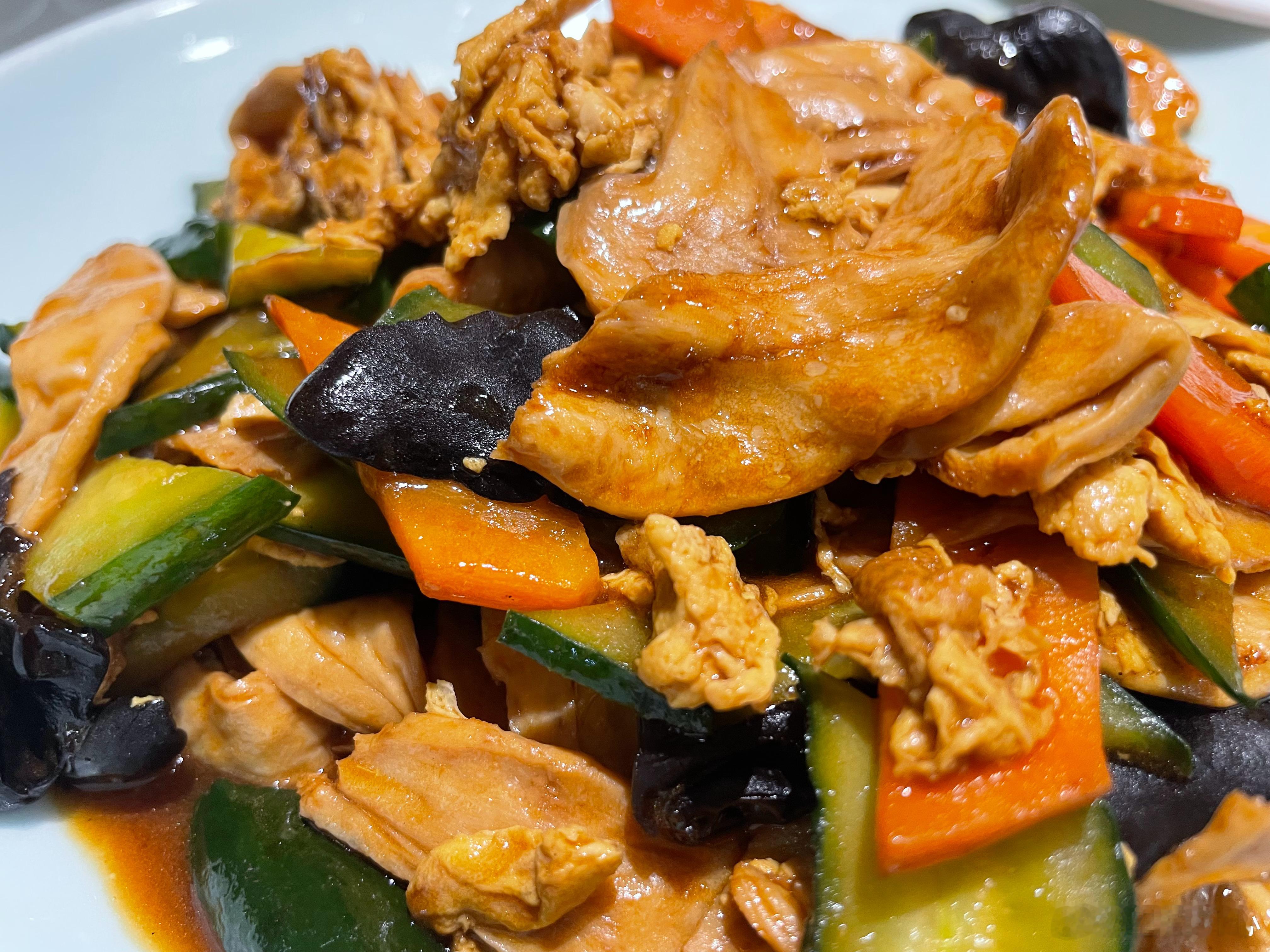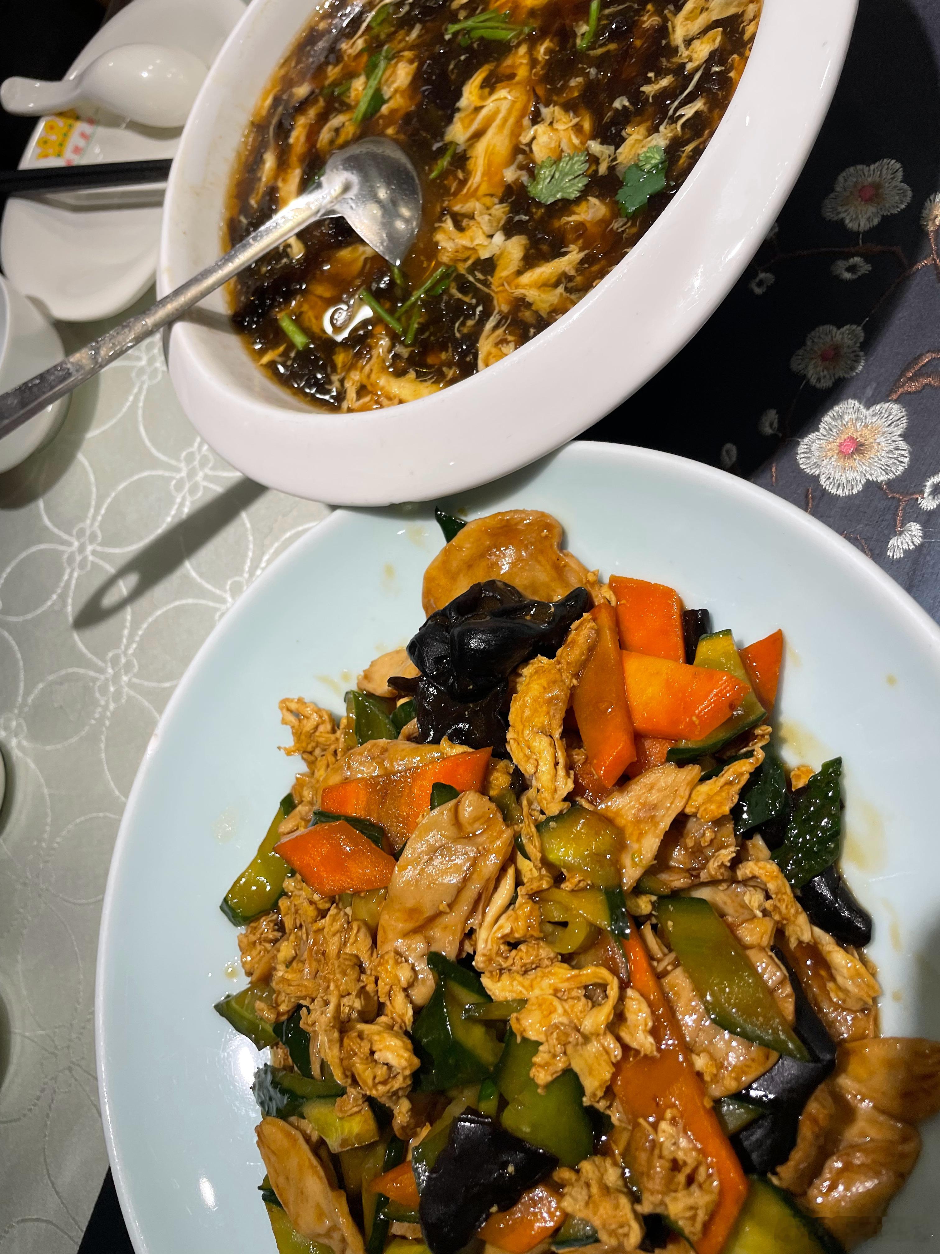 50块钱不到六个菜—-4个人刚刚好来聊城玩的建议可以吃一吃(dy团购)京酱肉丝、酸辣汤、丸子、木耳炒胡萝卜、白菜豆腐素水饺和韭菜肉水饺聊城 聊城·水饺皇后(昌润路店)