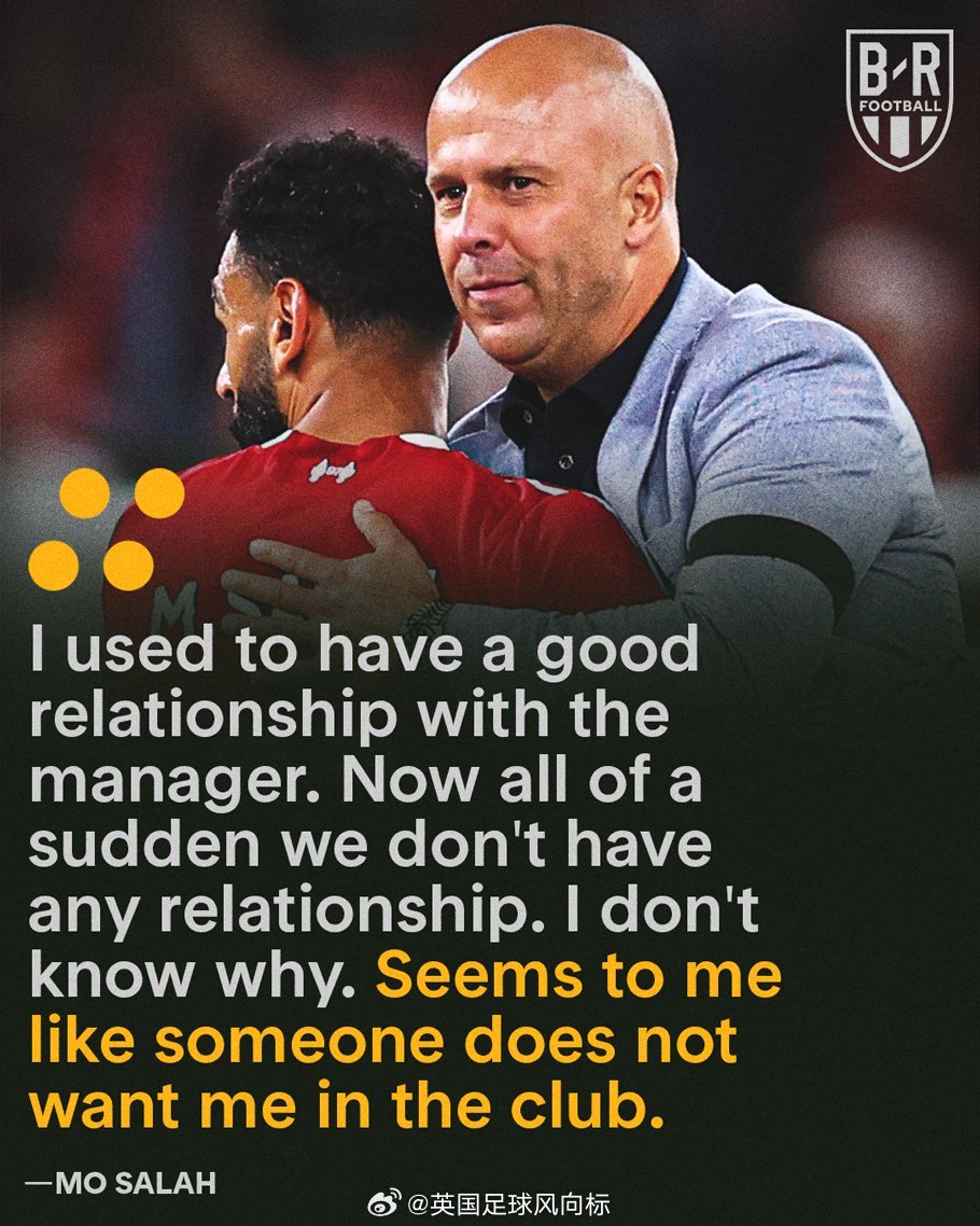 【萨拉赫炮轰斯洛特和俱乐部】利兹联3比3利物浦,连续三场当替补,在替补席坐满90分钟的萨拉赫,赛后主动向媒体发言,炮轰主帅斯洛特和利物浦俱乐部。“我感觉被俱乐部抛弃了,有人想让我承担所有的责任。我和主帅之间关系很好……突然之间,我们没有任何关系,我不知道为什么。似乎是我,在我看来,有人不想让我在俱乐部。”。“我不知道为什么这会发生在我身上。我不明白。如果我在别的地方,每个俱乐部都会保护球员。我不知道为什么我现在处于这种境地。我认为我不是问题所在。我为俱乐部做了很多……在这种情况下,我是唯一一个(不受保护的)”。“我能举个例子吗?这很愚蠢,但我很抱歉。我记得有一段时间,哈里·凯恩十场比赛都没进球。媒体说:哦,哈里肯定会进球的。说到我,每个人都说:他需要坐在替补席上。我很抱歉这样说,哈里!”“自从我回到英超联赛以来,我一直在这家俱乐部效力,进球比这一代人都多。利物浦,我将永远是这个俱乐部。我的孩子们永远支持,我爱这个俱乐部!”点评:主帅有权将球员放在替补席上面,主帅有权对球队的训练比赛相关的事情进行管理和处理,当然他也要对自己的决定和球队的成绩负责。萨拉赫这样把矛盾公开化,就很难有回头路可以走了。先去踢非洲杯,让事情冷却一下,之后就是冬窗,一切皆有可能。
