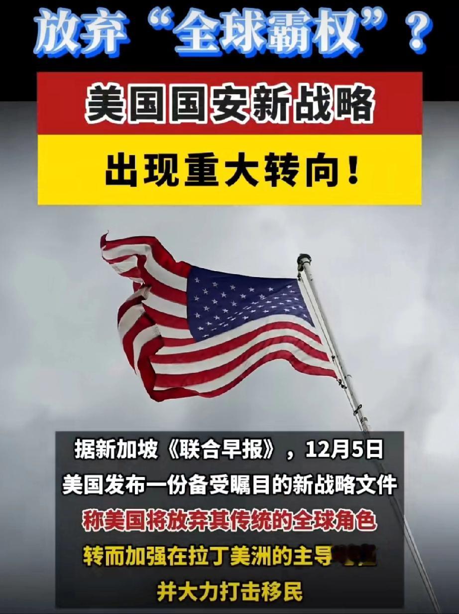 好家伙!白宫最新报告直接喊出“不允许任何国家过于强大”,简直把霸权写在脸上了! 不光明确说“不能允许任何国家变得过于强大,威胁美国利益”,还放话要阻止其他国家搞全球或地区主导,这吃相也太难看了吧! 更有意思的是,美国这次还搞了“战略大转向”:一边喊着“西半球优先”,直白宣布对拉美的干预权,又是加军事部署又是挂钩援助贸易;一边要缩减欧洲、中东这些“不重要地区”的军事投入,还吐槽欧洲拖后腿,想和俄罗斯重建战略稳定。 说白了,美国就是不想再“独自扛着”世界秩序,嫌盟友搭便车,又怕别人赶超自己。一会儿要搞再工业化、攥紧关键供应链,一会儿反移民反全球化,满脑子都是保住自己的霸权地位。 但时代早就变了,哪还能允许一家独大搞强权?各国凭实力发展,谁也别想卡别人脖子,这才是硬道理!