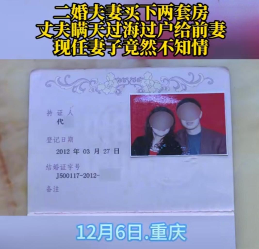 二婚夫妻买2套房被丈夫过户给前妻。妻子崩溃:十几年的感情了算什么? 刚才有刷到