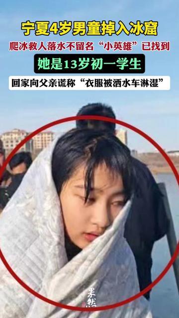 这姑娘的洒水车谎言,听着就鼻子发酸! 宁夏4岁男童掉冰窟,13岁初一女生爬冰救人,自己也落水,回家跟爸爸说衣服被洒水车淋湿,直到不留名小英雄找到,才揭开这个小秘密。 有人说她太拼了,13岁哪懂危险?也有人说,这才是刻在骨子里的热乎劲,看见人要救就冲了。 但我觉得,她哪是不懂危险?是看见小孩快沉下去,本能地往前扑;是怕爸爸骂乱闯祸,才编了个洒水车的谎,13岁的小丫头,一边敢拼着命救弟弟,一边还想着别让爸妈担惊受怕。 大家说,这姑娘的谎,是不是比小英雄更让人心里发酸?