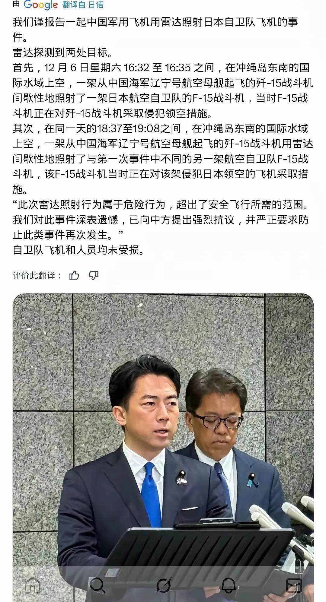 嘿,家人们,小八嘎的“觉悟”真是开了眼,堪称活教材! 咱歼15开雷达照了他们F15,这货先跳脚抗议,喊得全世界都知道,结果没等咱回应,转头就声明“没领海侵入、没危险行为”,打脸速度比博尔特跑百米还快。上次自卫队中将直升机坠海,人没了,他们第一时间就认栽是自己的问题,生怕晚一秒就被咱扣上“遭电战攻击”的帽子,那战战兢兢的样儿,别提多“乖巧”。 说白了,这觉悟都是咱实力“吓”出来的!咱海军越强大,他们越不敢造次,认怂比谁都快。看着他们这魔幻操作,又好气又好笑,咱接着变强,看他们还能整出啥新花样!