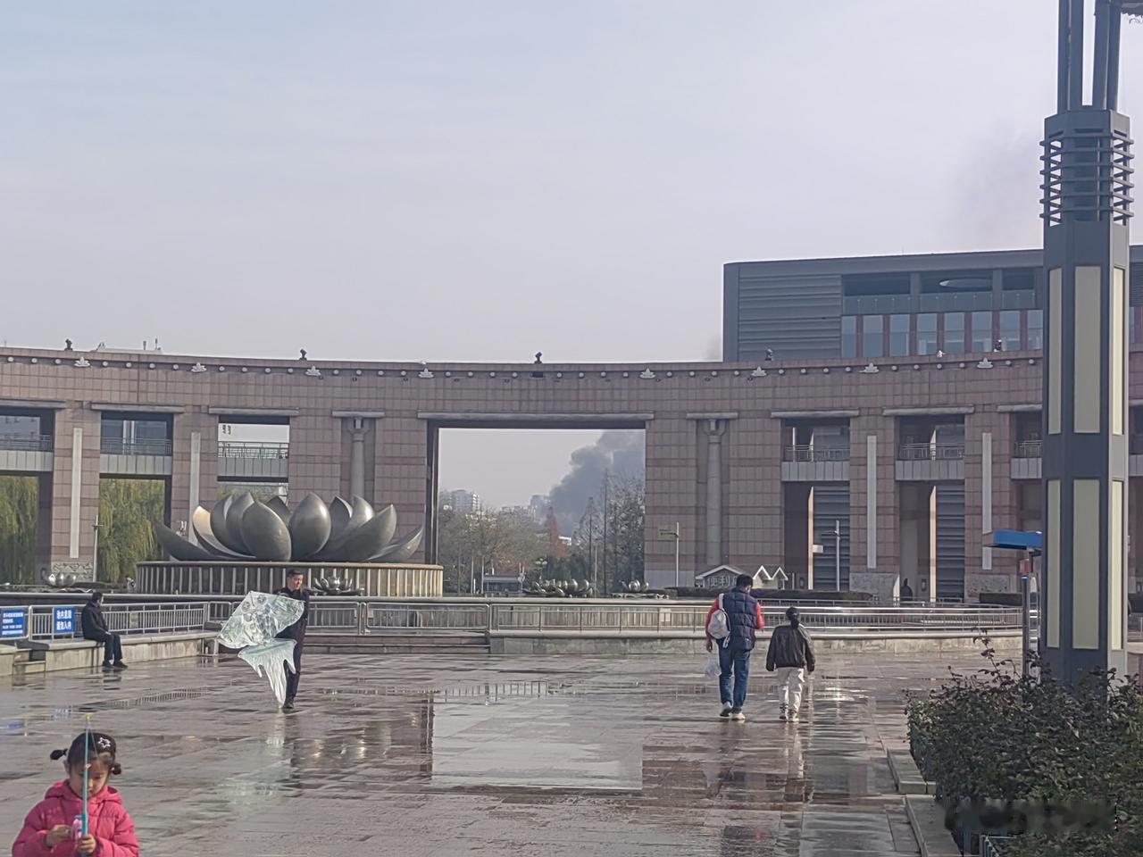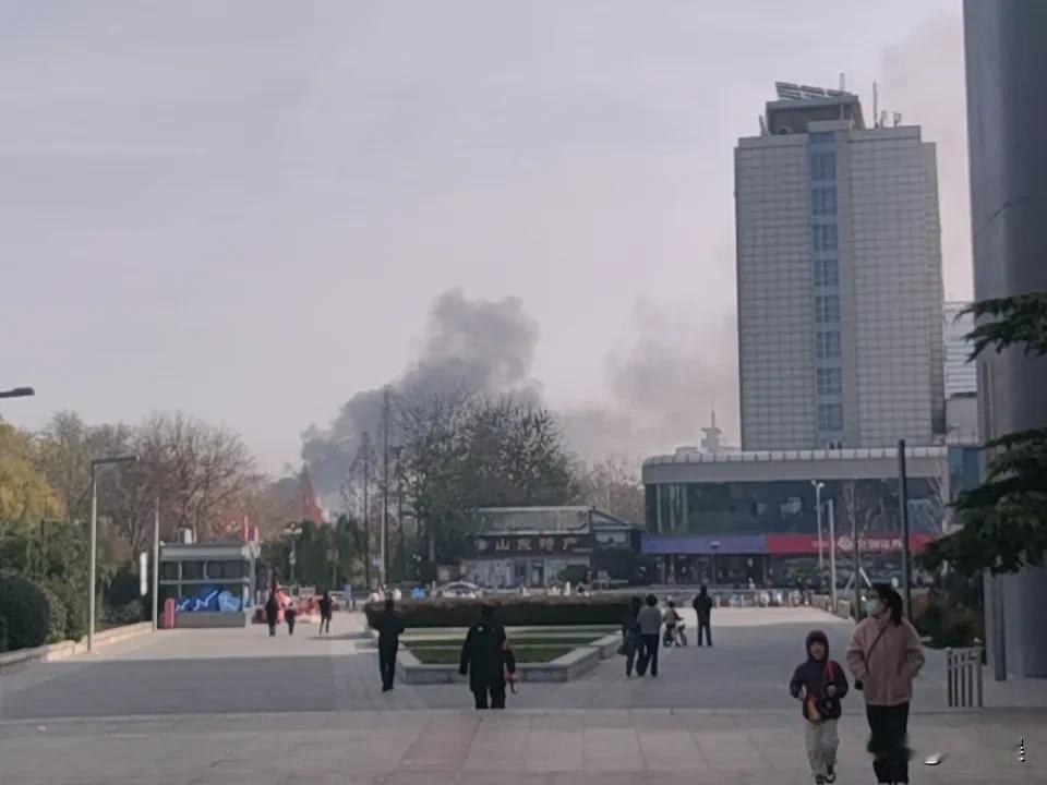 济南这是又火了?从美丽的泉城广场能看到黑烟呼呼的,火不太小,能
