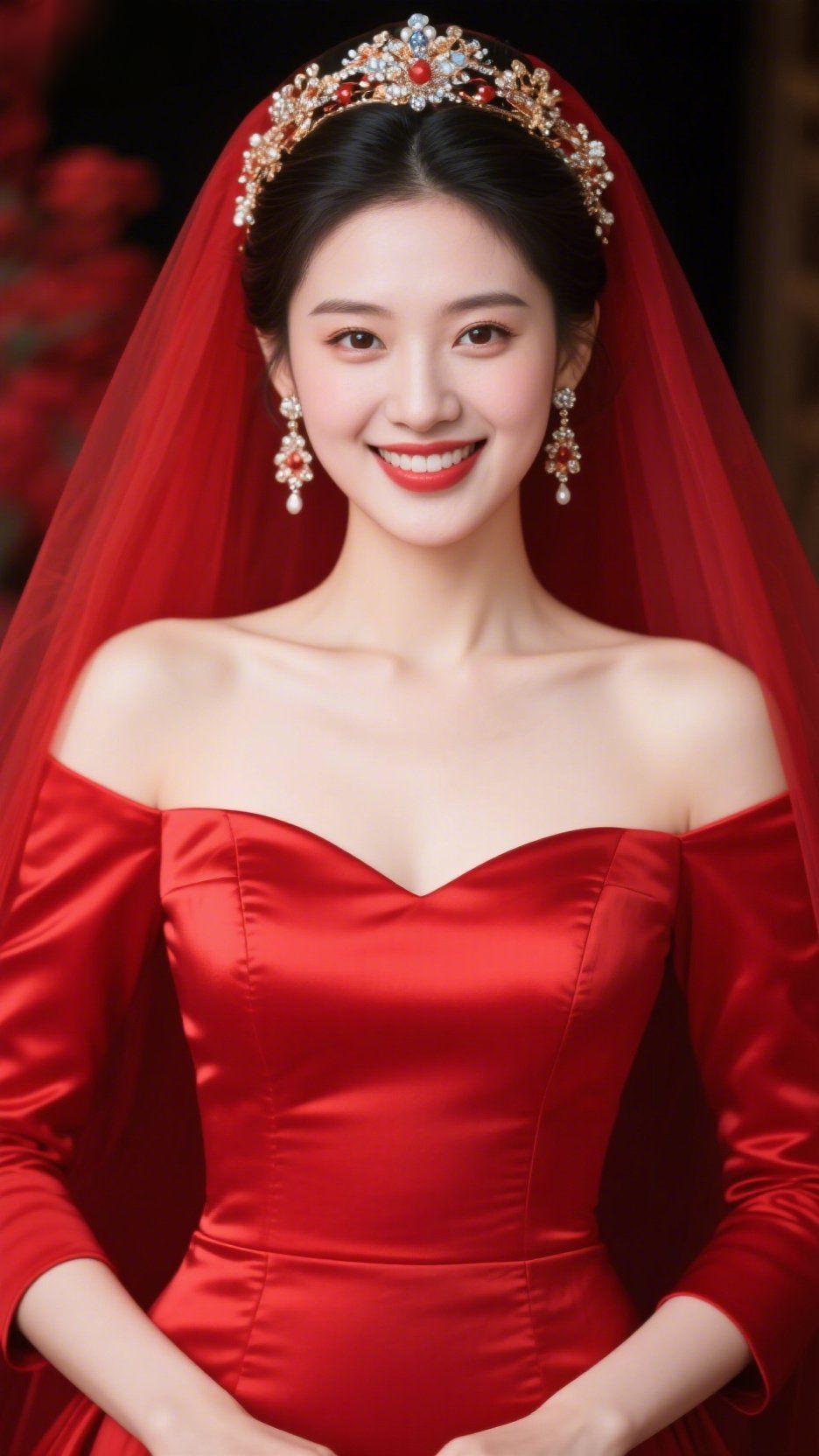 红妆赴佳期 一袭正红缎面裙,揉碎了人间的温柔与热烈。红纱轻垂,簪珠映着眉眼的笑意,是藏了许久的欢喜,终于落进了奔赴的佳期里。 红是中式浪漫最极致的表达,裹着岁月的温软,盛着对往后岁月的期许,将心底的美好期盼,化作眉眼间藏不住的甜。指尖轻拢的红绸,是奔赴幸福的笃定,是与爱人相守朝夕的赤诚。 这抹红,不只是华服的惊艳,更是心底的滚烫——愿以红妆为信,以余生为诺,把朝朝暮暮的寻常日子,都酿成满溢的甜。 中式婚礼 红妆之美