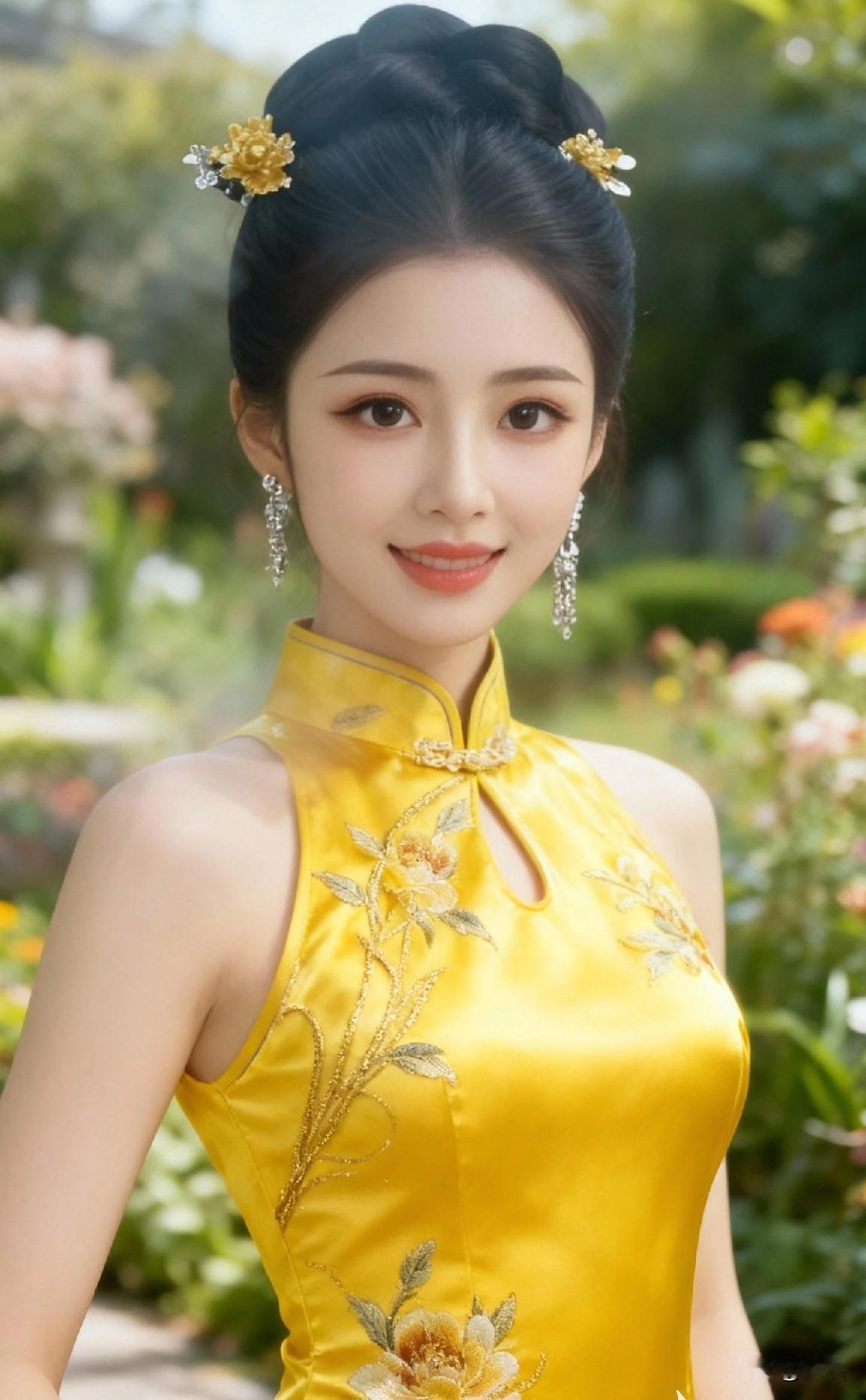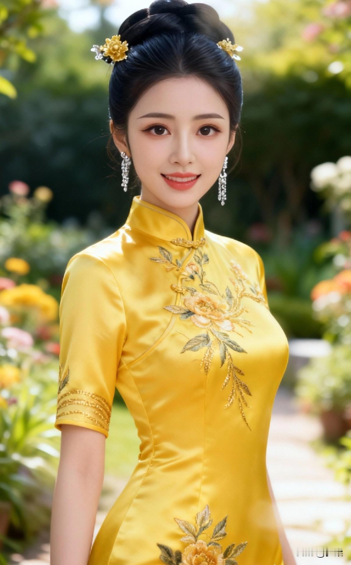 优雅旗袍,花间仙子,古典韵味,尽显东方之美。