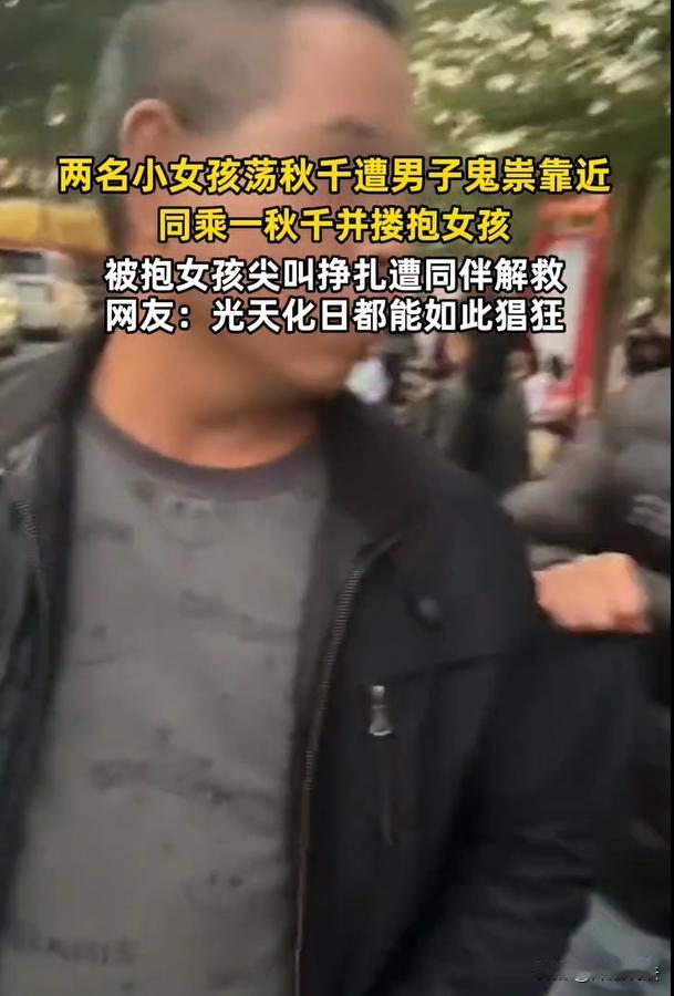 广东,在公园的休闲区,两个8岁左右的小女孩坐在秋千上玩,这时一名男子鬼祟靠近,他