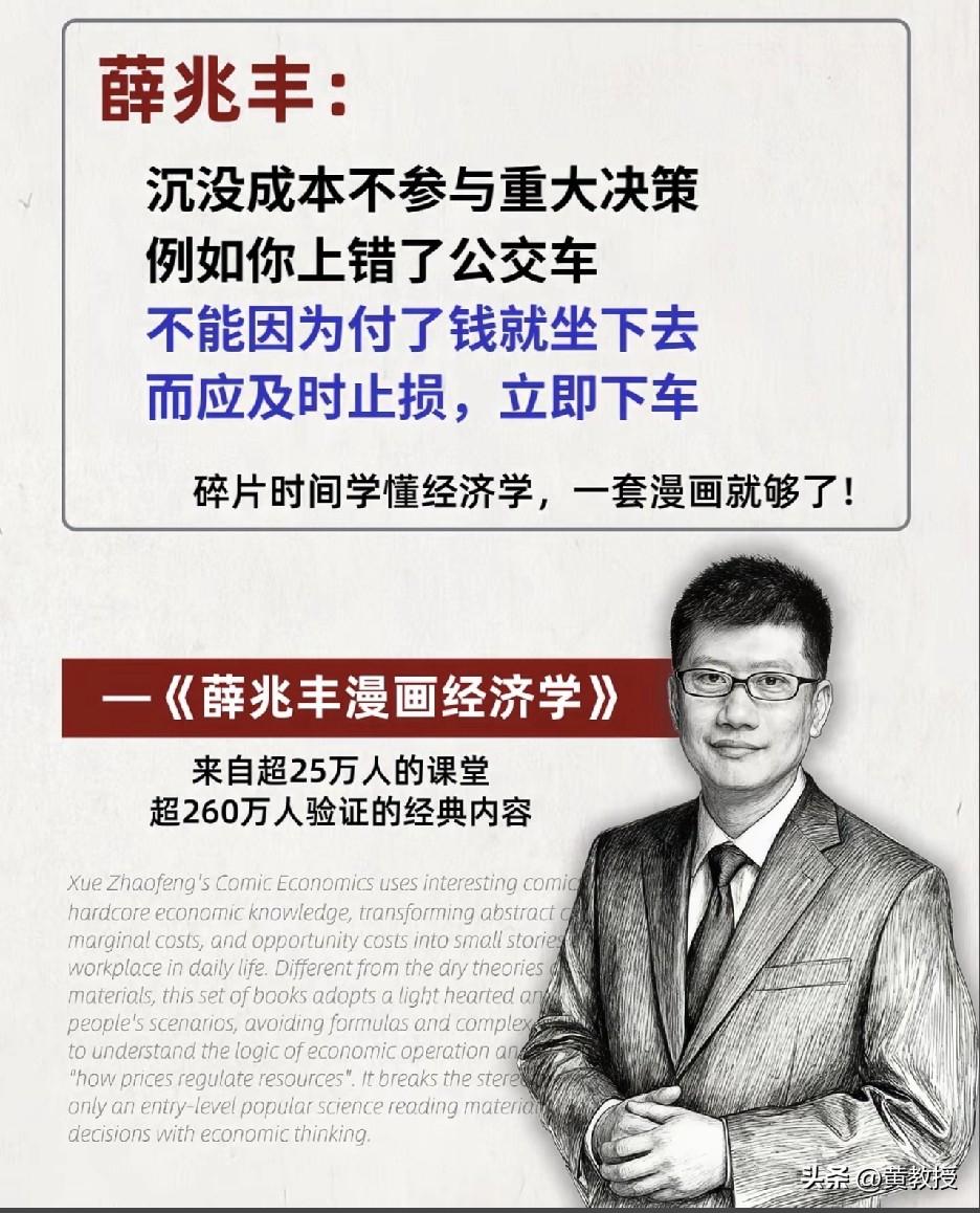 沉没成本 不参与决策,经济学的一个基本常识 很多基本盘都不知道。有时候学点经济学还是很有用的 才能把生活过好,有些人赶公交车🚍,最后一趟公交车开走了,你没赶上,你气的暴跳如雷,一脚踢向了垃圾桶,你骨折了。最后已经开走的公交车也不会回来。你生气有什么用呢?这就是沉没成本,你应该做的事,三思而后行,及时总结经验。下一次早点出门,就不会错过公交车了,同时做事情前想清楚,把最好结果,最坏结果都想明白,你就能释怀,一个好的心态是需要修炼的,更需要学习知识 沉没成本不参与决策,记住了