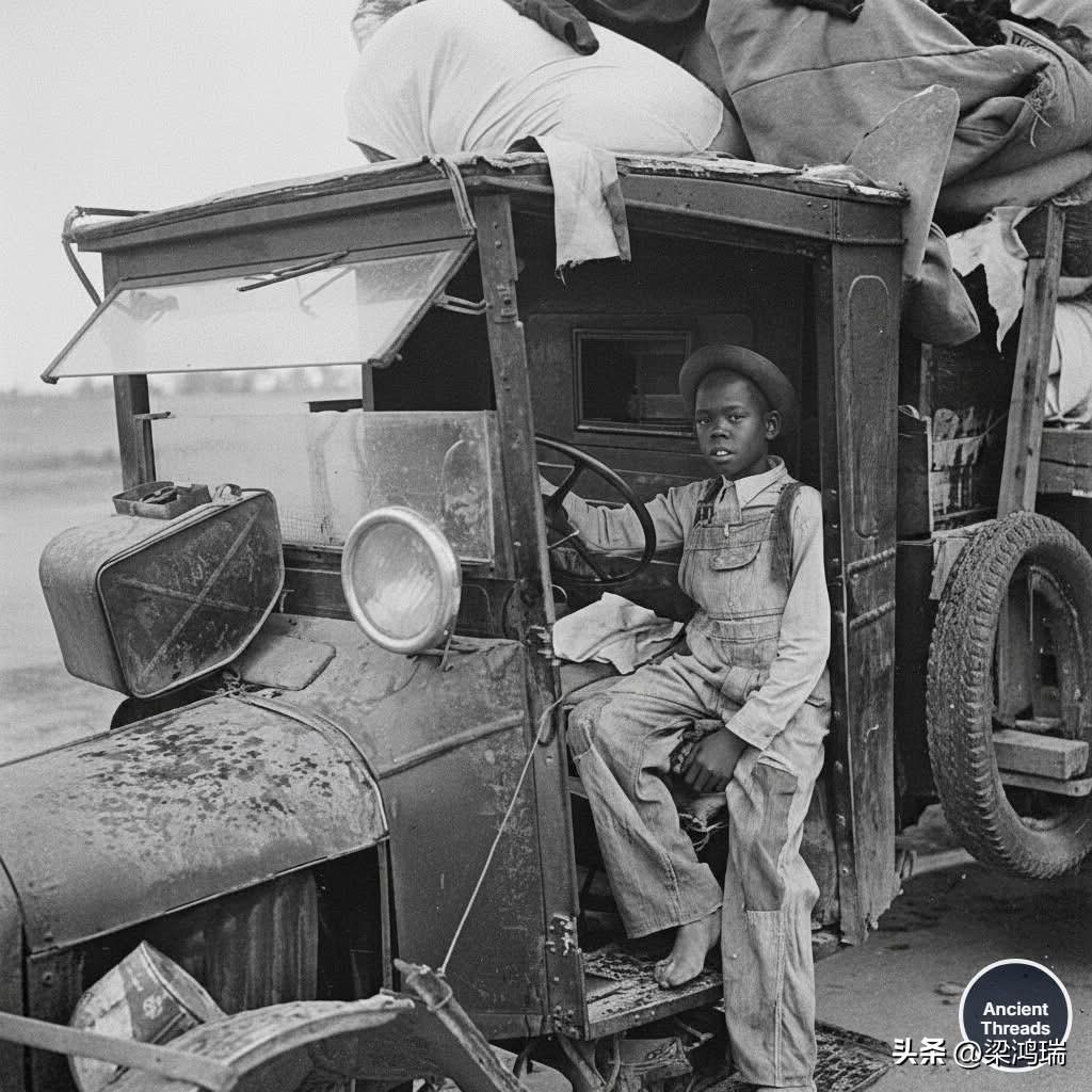 照片拍摄于1941年,正值美国大萧条(Great Depression)时期,记录了佐治亚州普特南县农村地区,特别是非裔美国人社区的艰苦生活。 照片中的男孩衣着朴素,穿着罩衫,赤着脚,表情严肃,坐在卡车驾驶室的踏板上。他的家人可能正在卡车上打包行李,准备搬到社区内的另一个简陋住所。 这张照片由著名的纪实摄影师杰克·德拉诺(Jack Delano)拍摄,当时他为美国农业安全管理局(Farm Security Administration,FSA)工作。 这张照片具有重要的历史意义,它反映了当时许多佃农家庭面临的贫困、缺乏经济保障以及艰苦的农村生活现实。