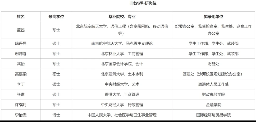 中央财经大学2025年度人才招聘拟录用人选公
