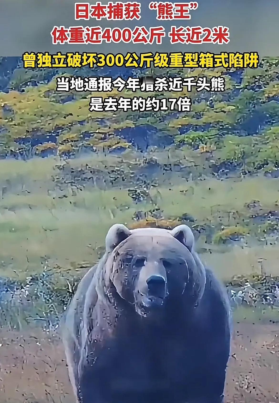 日本捕获400公斤“熊王”!站起来近3米,村民:它闯进村像“移动小山” 近日,日本北海道一则“熊王被捕”的消息刷爆网络——当地猎人联合相关部门,成功捕获一头体重接近400公斤的巨型棕熊,其体型之庞大让见惯了野生动物的村民都直呼“从未见过”。 据现场目击者描述,这头“熊王”体长超2.5米,站立时身高接近3米,四肢粗壮如成年人小腿,爪子锋利得能轻易划开树干。此前数月,它多次闯入附近村落,捣毁农作物、推倒围栏,甚至有村民夜间遇到时,被它庞大的身影吓得不敢动弹,当地不得不组织专业队伍展开围捕。 捕获过程并不顺利。由于“熊王”警惕性极强且力量惊人,猎人团队先后设置了多道陷阱,均被它破坏或避开。最终通过无人机追踪+麻醉射击的方式,才成功将其控制。称重时,磅秤显示的398公斤数据,让在场人员都惊叹不已,要知道普通成年棕熊体重多在200-300公斤,这头“熊王”堪称同类中的“重量级选手”。 专家分析,这头棕熊能长到如此规模,可能与北海道充足的食物资源、较少的天敌有关,加上其年龄较大,长期积累下形成了惊人的体型。目前,“熊王”已被送往当地野生动物保护中心,接受健康检查后将妥善安置。 不过让人好奇的是,这头“熊王”的活动轨迹中,曾多次出现在一片废弃林场,那里是否还藏着它的“领地秘密”?而400公斤的体重,是否已是棕熊生长的极限?后续保护中心还会公布更多关于“熊王”的生活细节,感兴趣的朋友不妨关注后续报道,看看这头“森林巨兽”还有哪些不为人知的故事。 发优质内容享分成