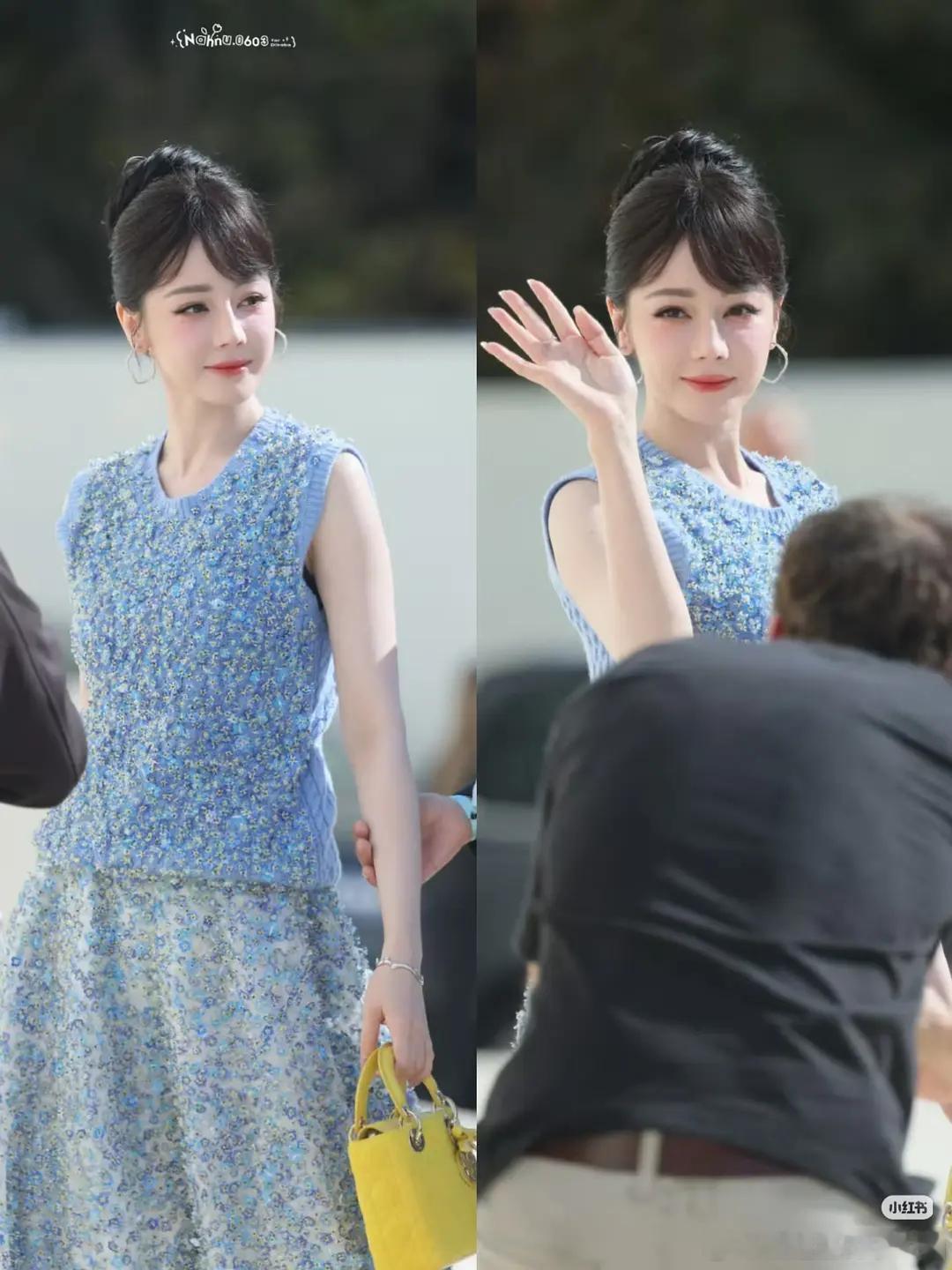 杨幂这身胸前设计挺别致,她穿什么都好看,