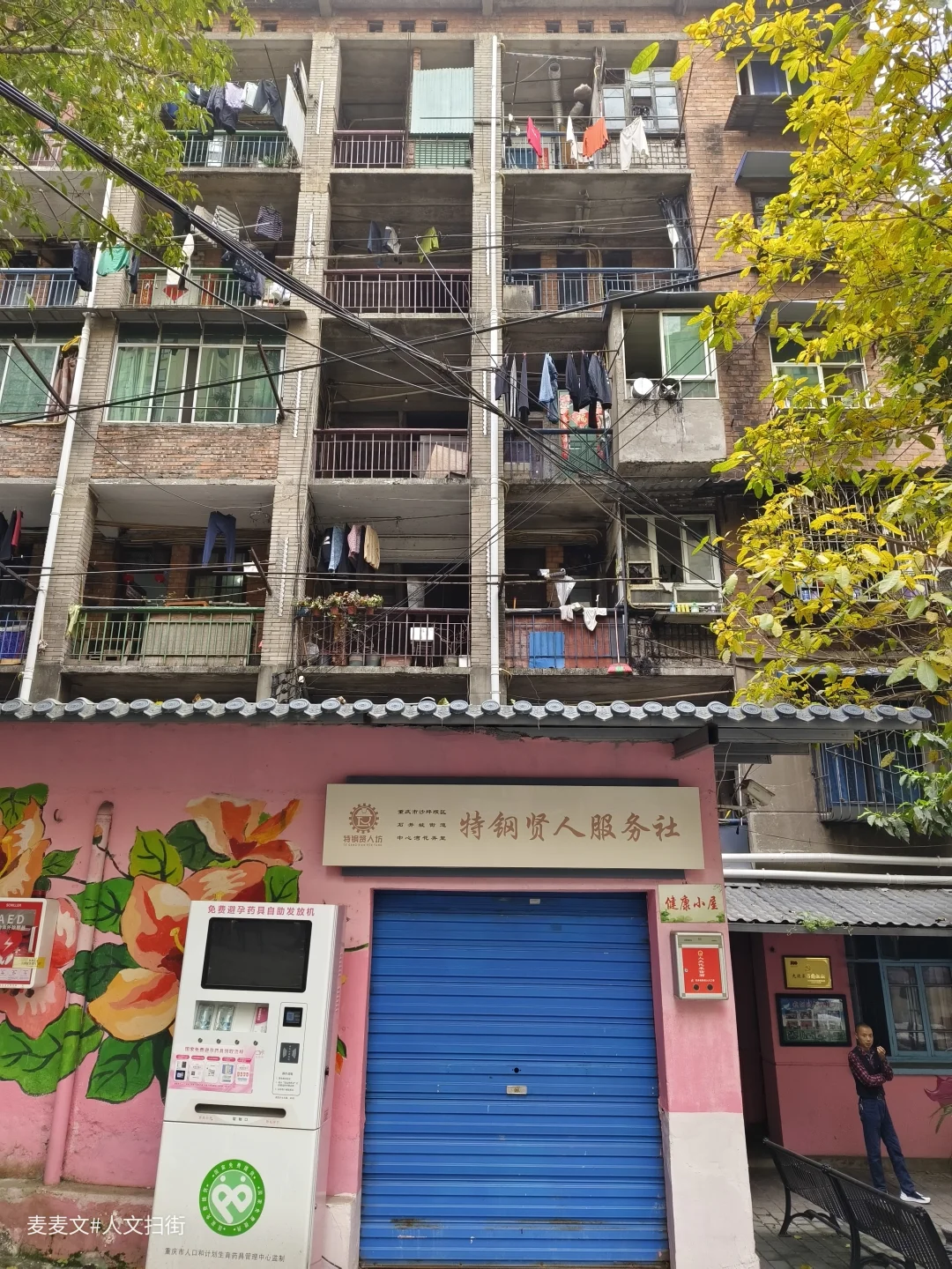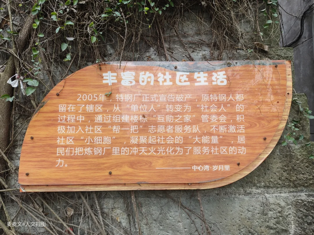 上中心湾,位于重庆市沙坪坝区石井坡街道中心湾社区。老特钢人都知道中心湾这个老社区分为上中心湾和下中心湾,它们都是重庆特钢厂家属区的重要组成部分。近年来,社区的“特钢贤人”计划实施后,经过改造和活化,不仅让社区焕然一新,也为居民创造了一个共享美好生活的平台。 走进上中心湾,首先映入眼帘的是各具特色的墙绘,这些生动的艺术作品展现了社区的历史变迁与未来愿景。每一幅墙绘不仅是艺术表达,也是居民共同回忆的承载。一处曾经的土坡被成功改造成了“时光不弃花园”,它不仅成为了居民休闲的好去处,同时也是艺术与自然融合的典范,还获得了市级奖项。 还有“中心湾花弄里”的居民在社区党委的引领下,以楼栋“互助之家”为阵地,以“特钢能人坊”为载体,齐心协力扮都家园。他们种绿植、玩涂鸦、作手工,打造出一个个富有特色的“打卡地”。以花为媒,让这样一个老小区的和谐氛围“香飘万家”。