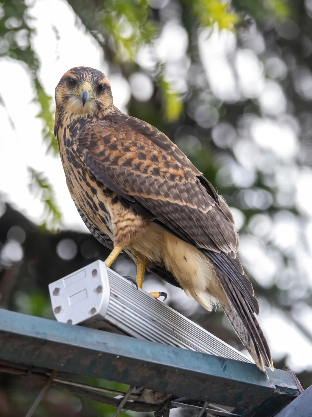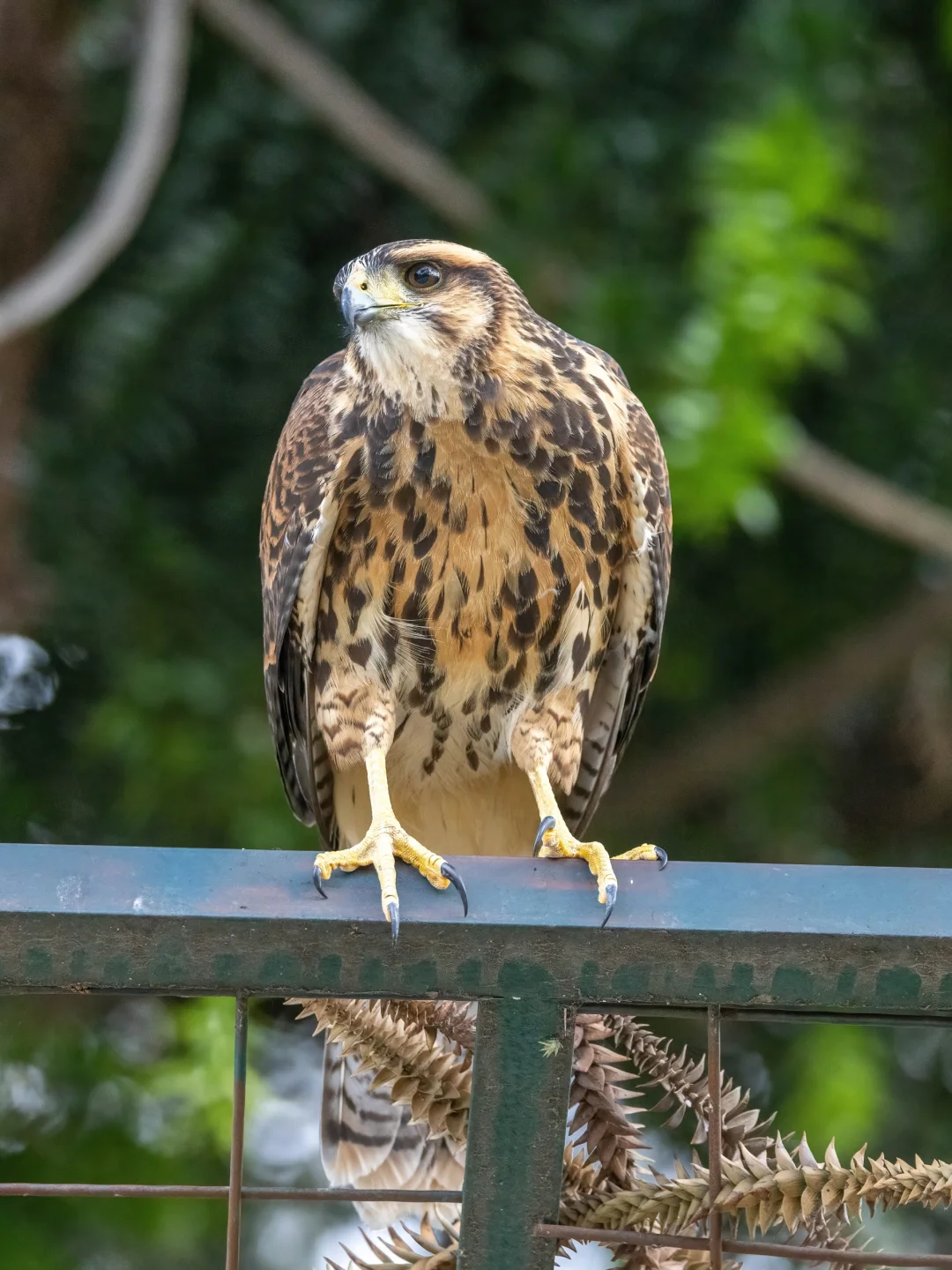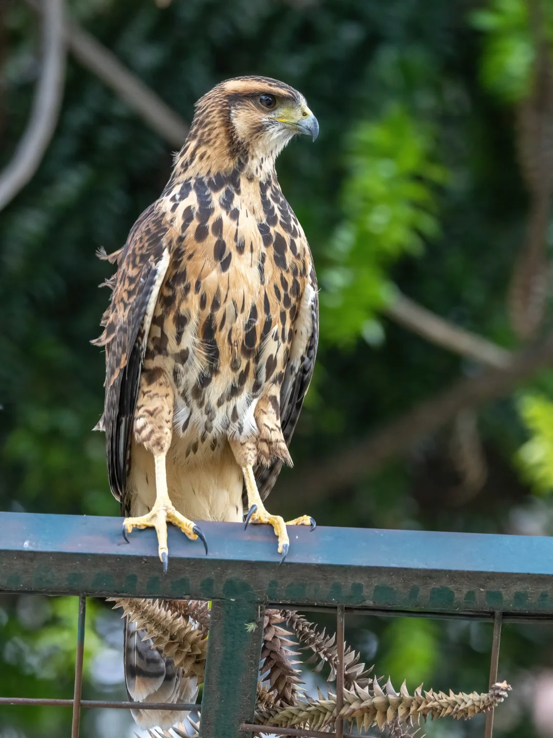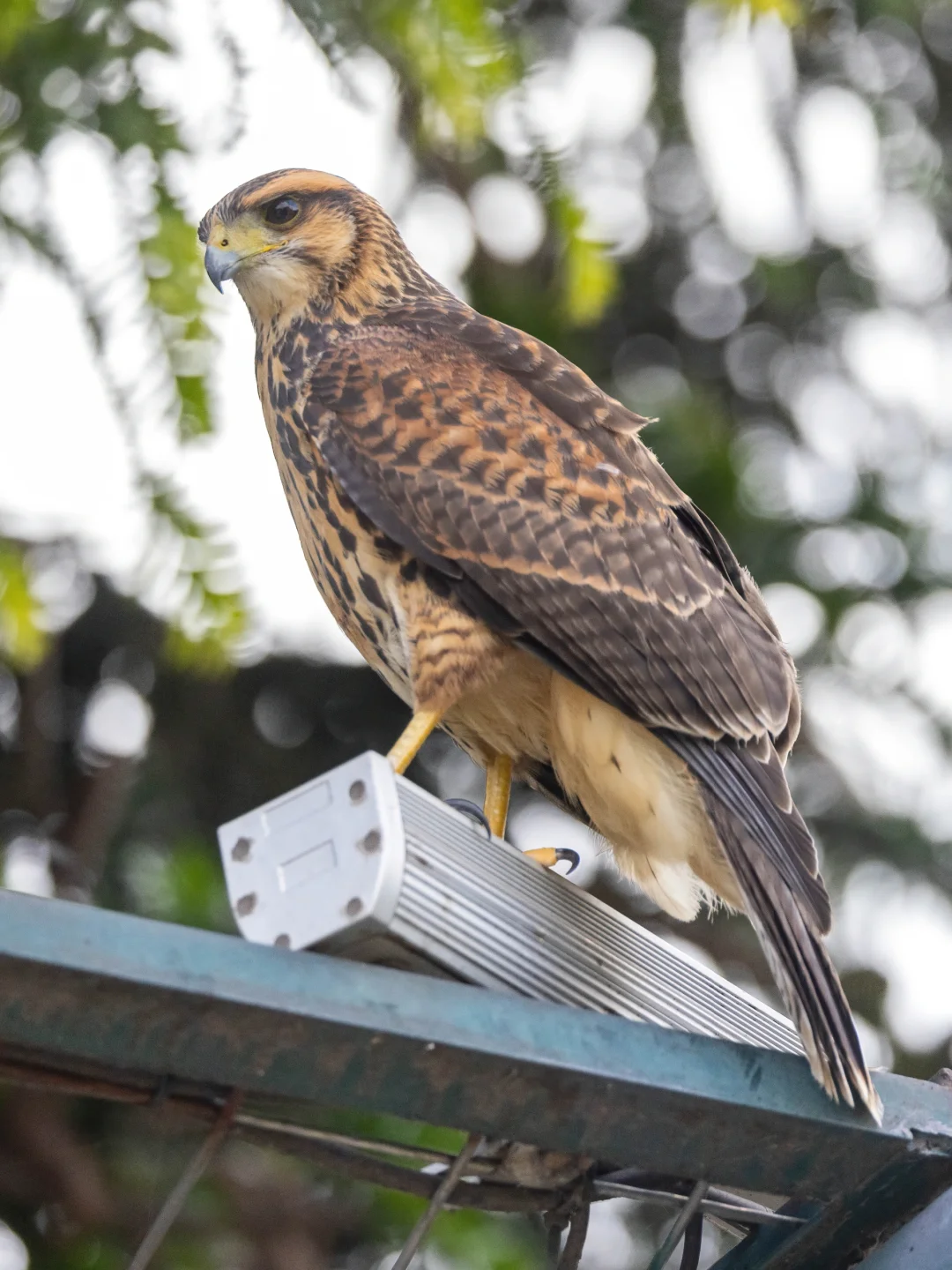 站立在市中心公园的栗翅鹰