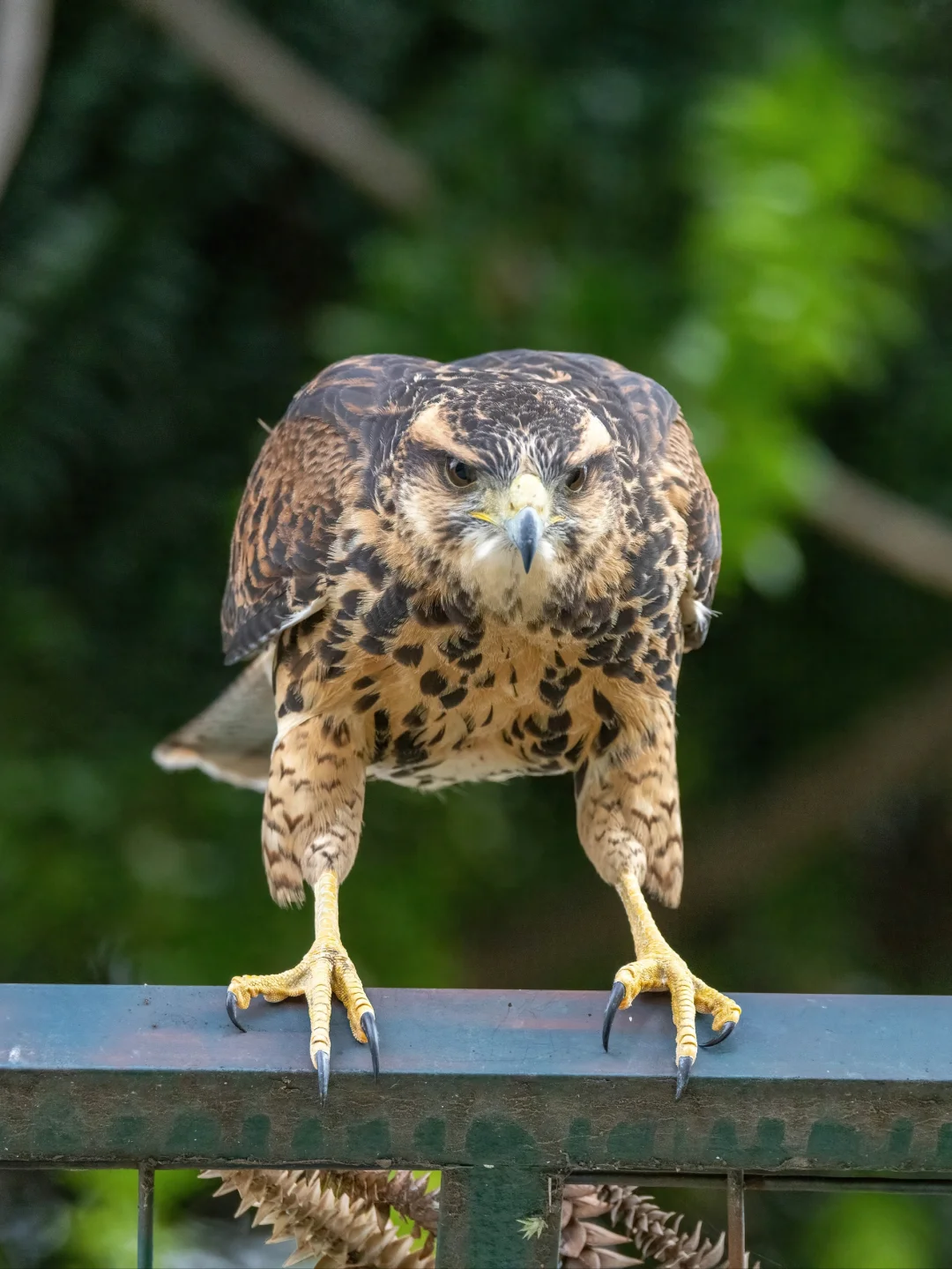 原创拍摄 栗翅鹰,鹰形目鹰科栗翅鵟属。就是著名的哈里斯鹰!是世界上唯一认为喜欢集群生活的鹰。 我在布宜市中心看到这只栗翅鹰离我非常近,不过他们好像眼中没有我,只有不远处的鸽子和斑鸠。。。