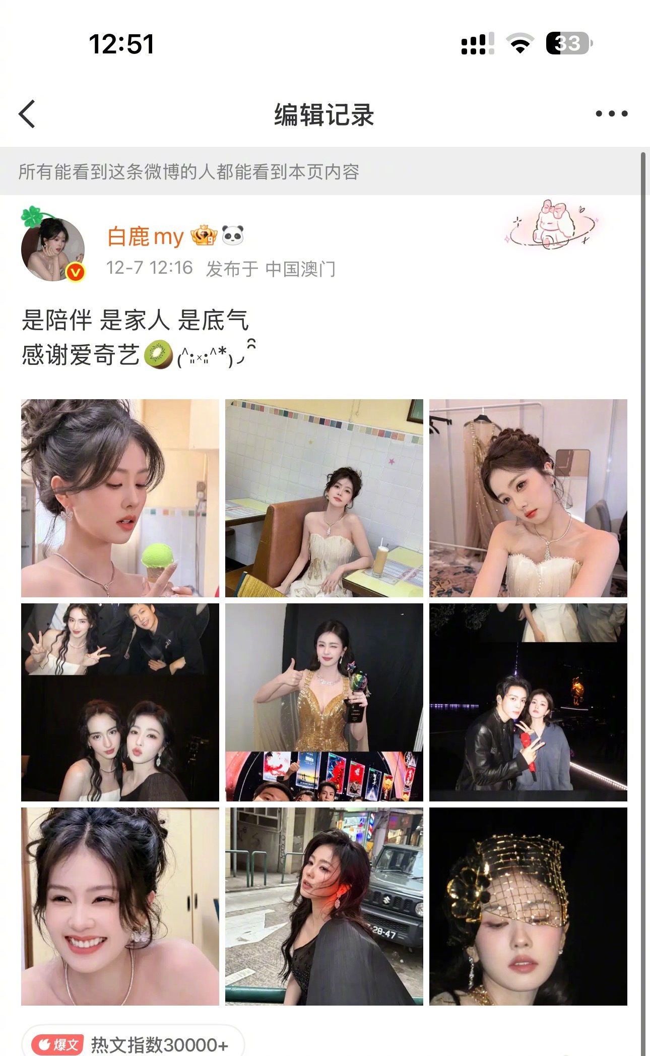 白鹿编辑记录 才发现白鹿微博有编辑记录,在第一条里面不小心把备忘录上的文字给发出来了,上面写的是“还差一张曾舜晞没给传!”,这两人关系啥时候好成这样了,真想知道曾舜晞没给传的是哪张照片!
