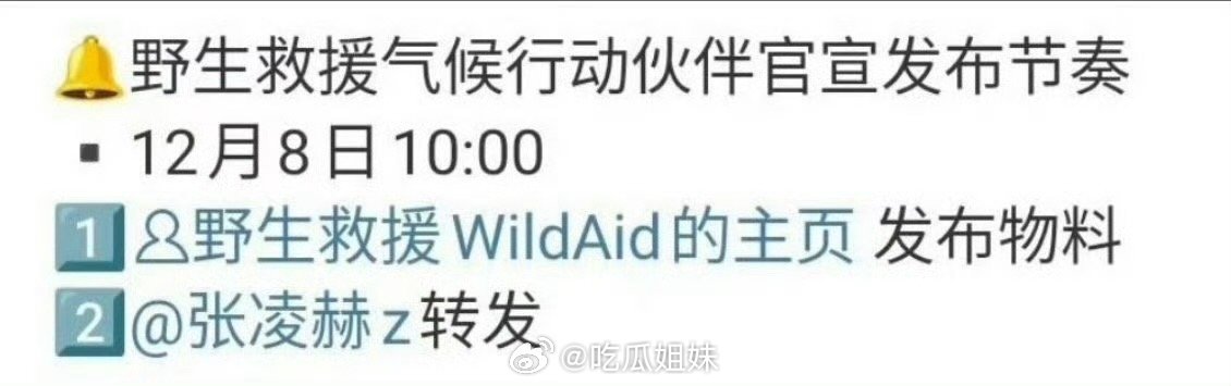 张凌赫野生救援气候行动伙伴要官宣了,明天10点发布物料,期待我们张工上线!