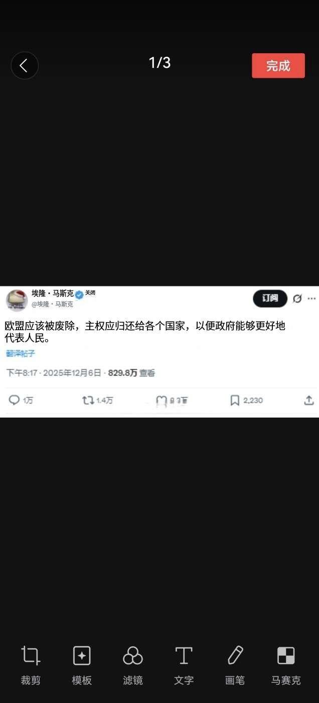 马斯克发帖呼吁欧盟解散 马斯克继续骂欧盟
