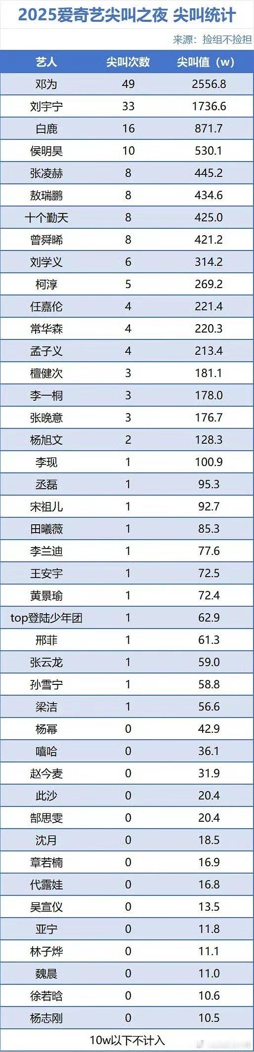 爱奇艺尖叫之夜微指/尖叫统计📊