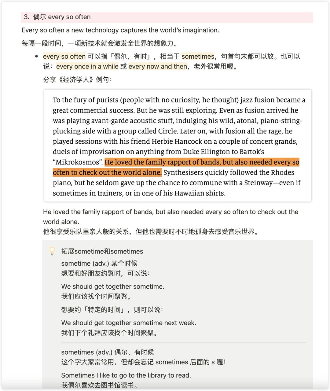 every so often 可以指「偶尔,有时」,相当于 sometimes,句首句末都可以放。也可以说:every once in a while 或 every now and then,老外很常用喔。
