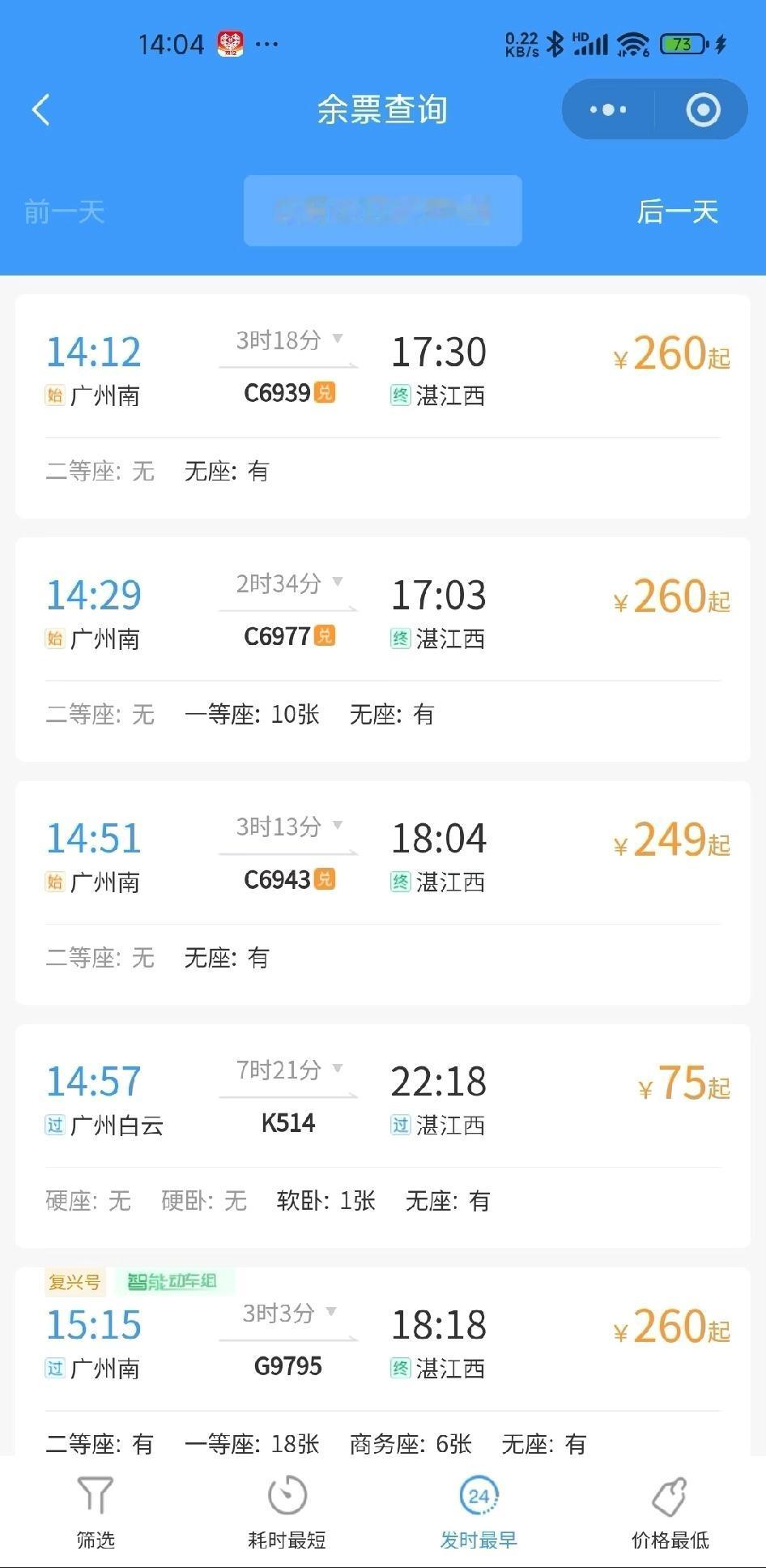 广州到桂林高铁票价148元,479公里 广州到深圳高铁票价74.5元,102公里 广州到湛江高铁票价249元,428公里 一年一度春节要到了,看看自己的钱袋子合适高铁还是大巴车呢?嗮嗮大家高铁回家之路费用。