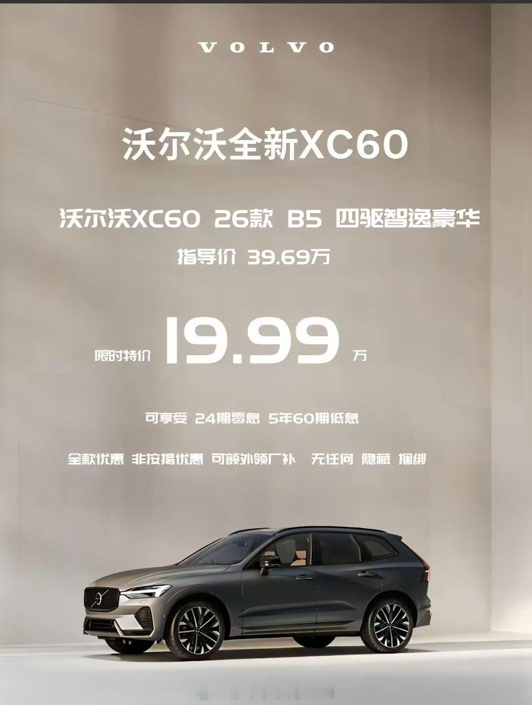 沃尔沃XC60不到20万这是真的还是假的?只能说非常离谱了要知道上市指导价39.69万这差不多降了二十万魔幻到有点不敢相信无论是空间,品牌还是配置沃尔沃XC60都不差降价到这种程度如果是真的那以前老车主得哭晕吧?汽场全开沃尔沃