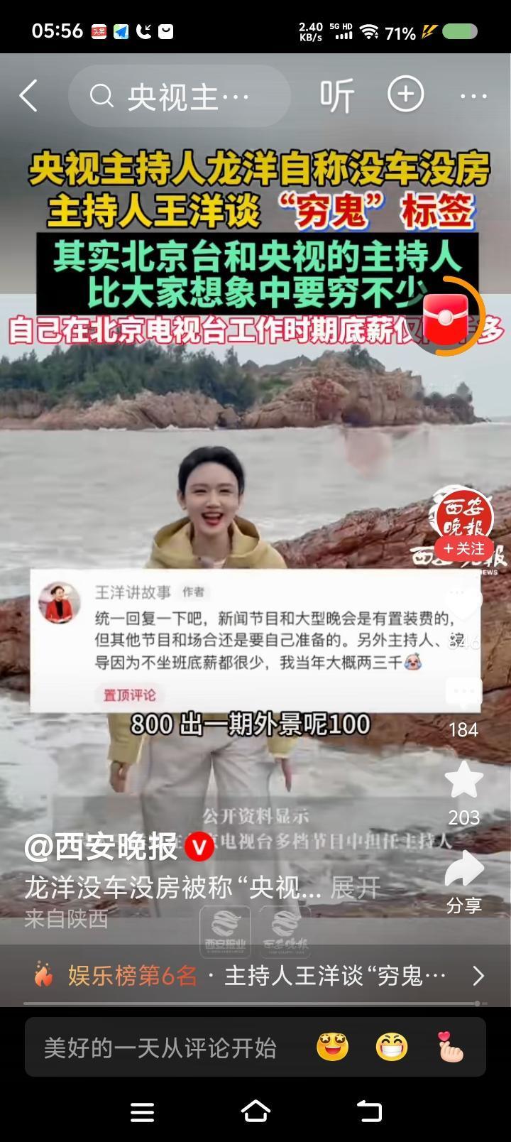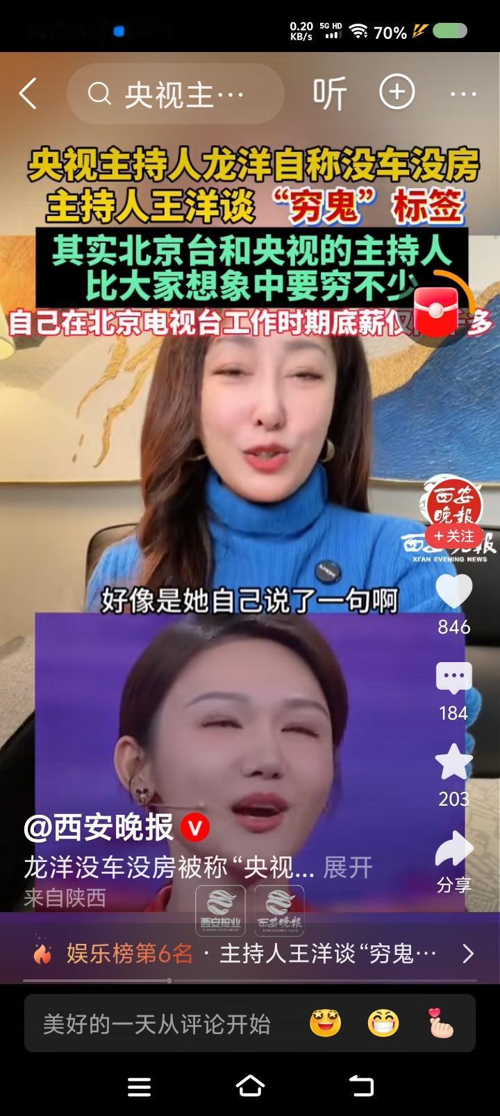 主持人的“穷鬼”标签—— 据报道,某主持人吐槽自己没车没房。引来另一个主持人共鸣…… 点评: 一、评论区很多人说话不当,对这个职业有污名化操作。 二、如果央视、北京台的主持人都这么说了,那中国哪个电视台的主持人不穷?哪里不穷,去哪里,如何? 三、你想让别人怎么接这话? 别人怎么共情?除了了解情况你的同事。 四、如果能引起大家对工人阶级状况的关注,是好事;如果仅限于个人吐槽,不必说了吧。