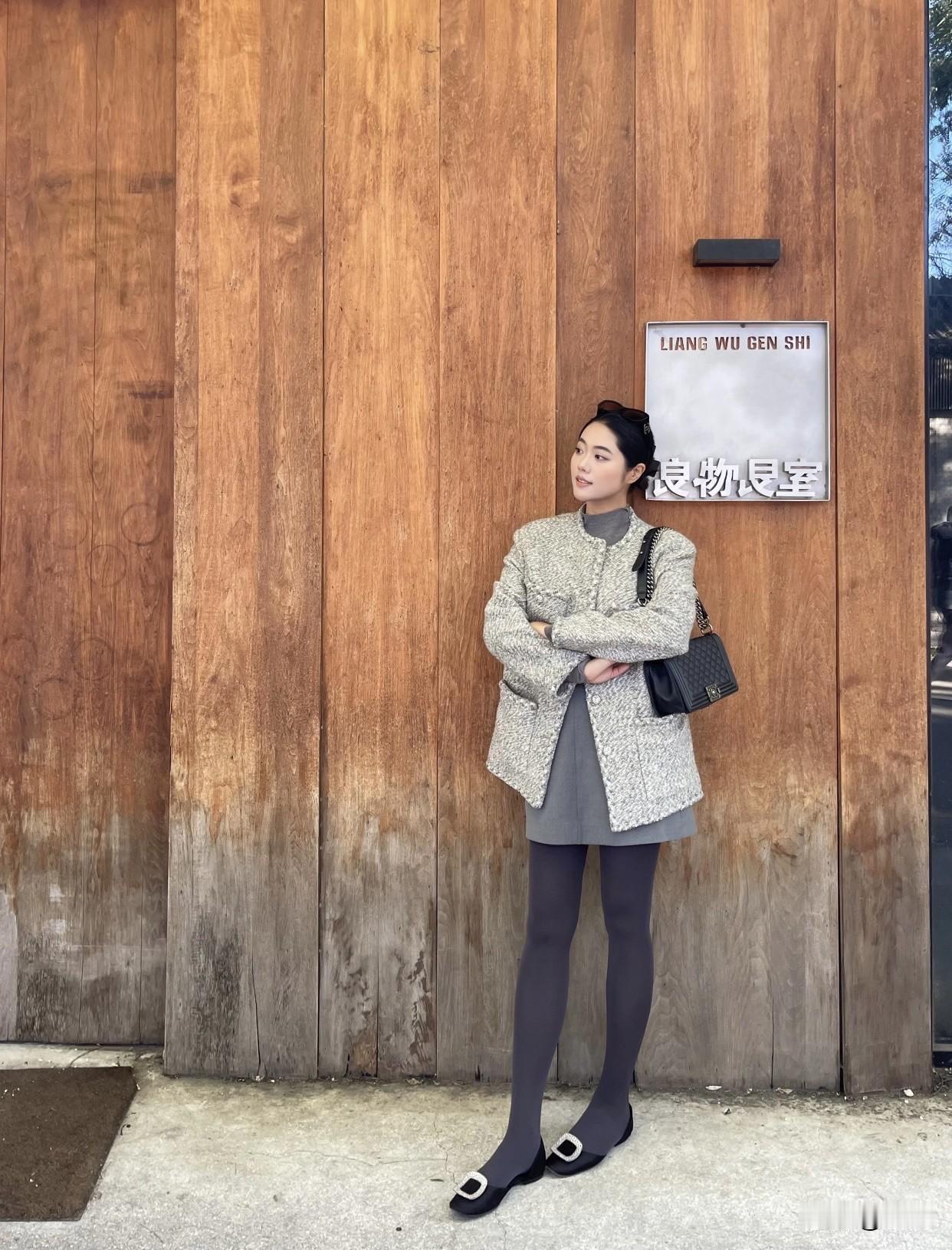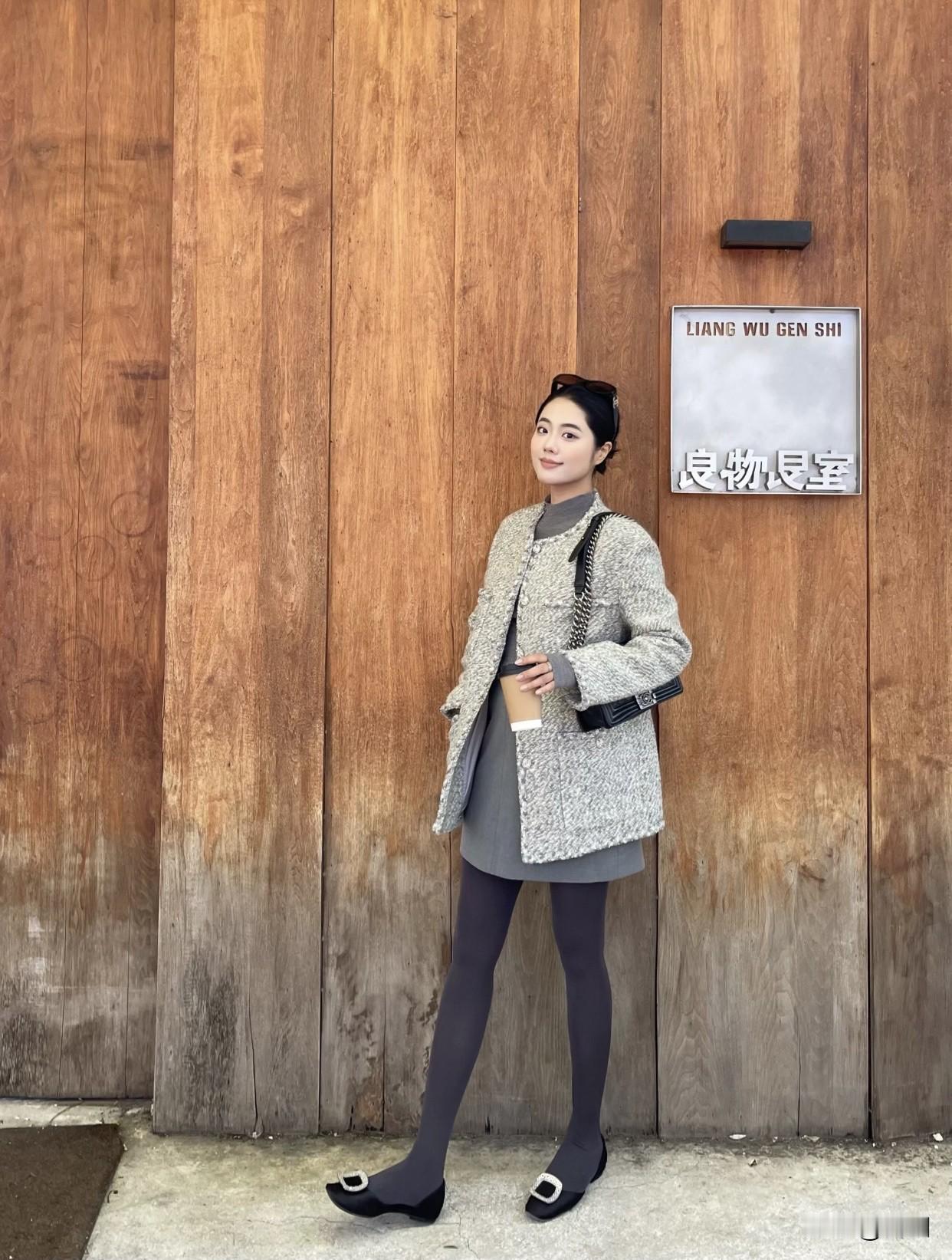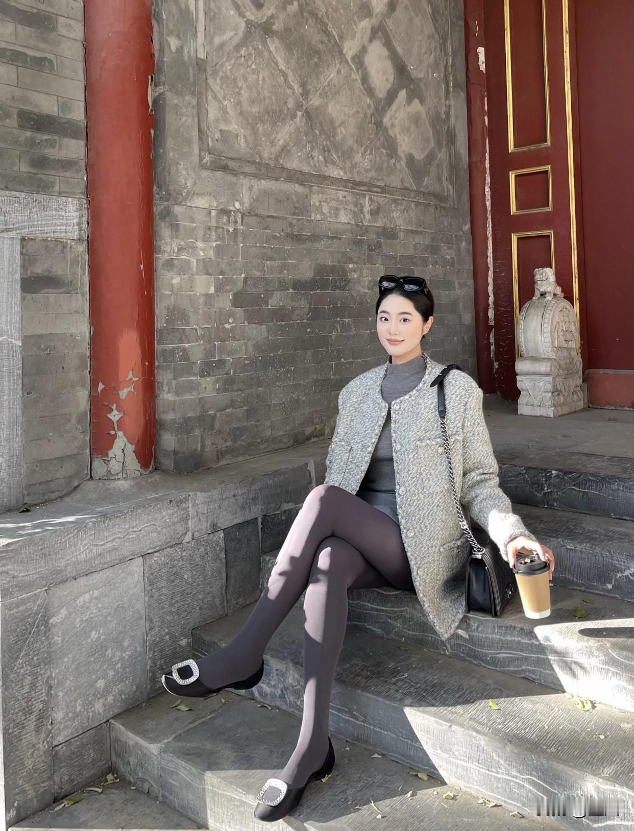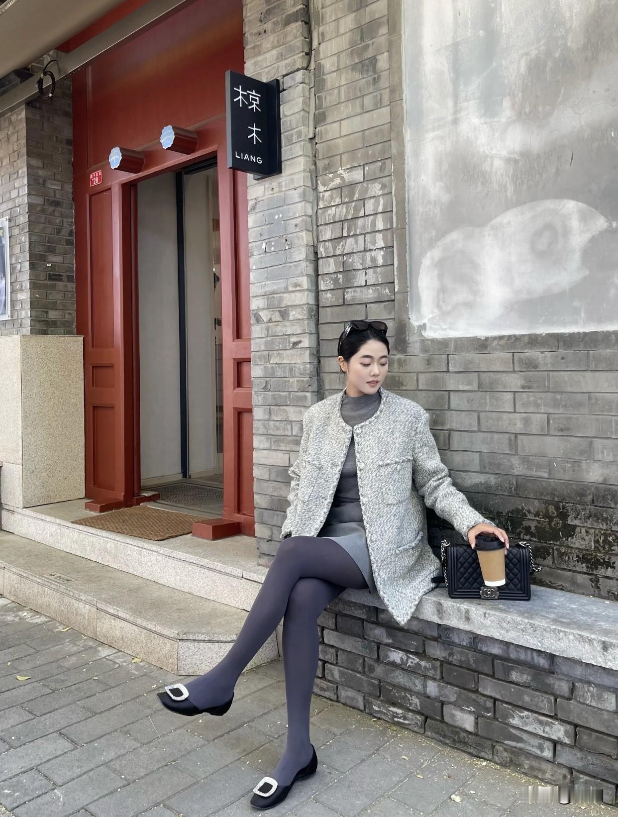分享美女穿搭服饰秋日穿搭指南:灰色大衣+黑色丝袜,优雅出街