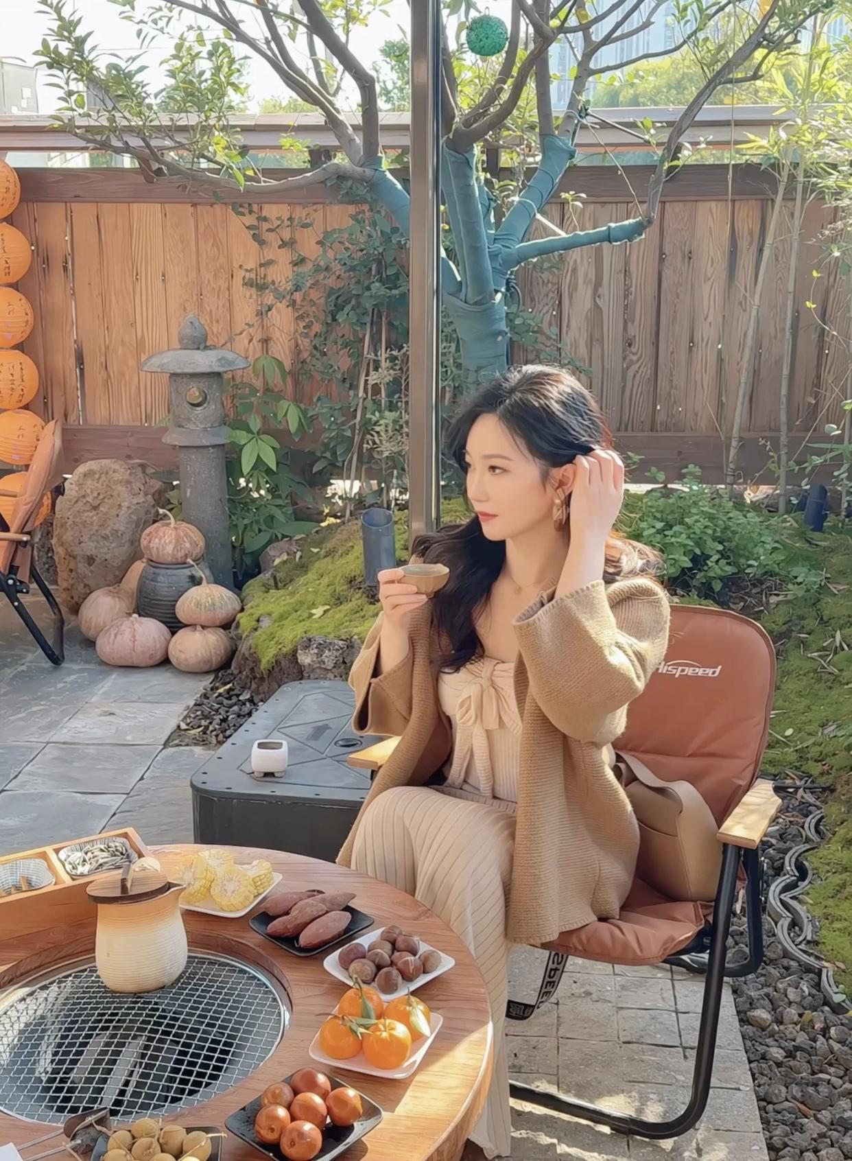 秋日暖阳下,享受茶香与美食的宁静时光。🍂🍵🍜