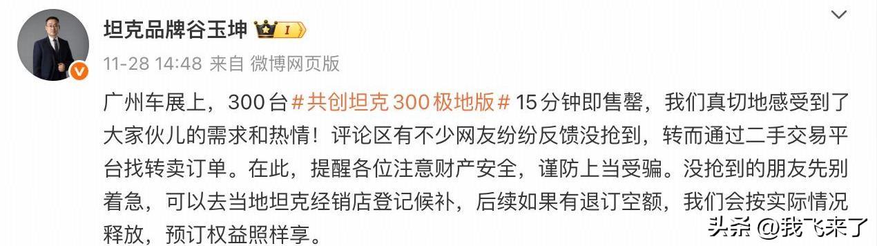 300辆一抢而空,坦克300极地版有多火? 12月10日,坦克300极地版要上市了。其实这辆车早在2025广州车展就亮过相,而且全球限量300辆一开放预订就立马售罄,可见有多受欢迎。新车主打“极地橙”配色,还可以选2.0T汽油或2.4T柴油发动机。此前普通版坦克300的售价区间是19.98万到23.48万元。冬日生活打卡季 极地版不仅颜色惹人眼,还有专属拉花、“极地荣耀”身份徽章、头枕烫印等20多个细节,全车满满定制感。这种橙色灵感还来自国际安全色,拉花图案则参考了南北极的最高峰。越野配置也很硬核,像9500磅的遥控绞盘、全地形胎、加热风挡和2.5吨牵引资质,全都安排上了,甚至还带行李架和侧踏板。 内饰跟普通版一样,用的是14.6英寸中控屏+12.3英寸液晶仪表,还能切换差速锁和四驱。动力也是熟悉的2.0T或2.4T,最大功率分别167千瓦和137千瓦,都配9挡手自一体箱。 这种限定又硬派的做法,难怪一车难求。以后想买,还得抢得过人家吗?坦克把“稀缺”和“个性”玩明白了!