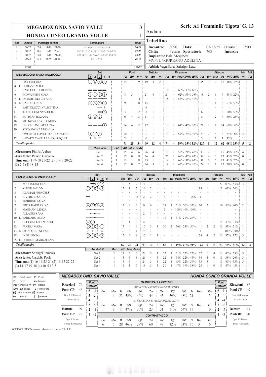 【意甲女排诺瓦拉零封佛罗伦萨 基耶里完胜佩鲁贾】国际排坛战报速递 12月7日,意甲女排第13轮,诺瓦拉主场3-0(25-21/25-17/25-16)零封佛罗伦萨,锁定半程第四。托洛克21分、石川真佑14分、赫博茨10分、坎比荣膺MVP,客队诺尔玛13分。另外两场,基耶里主场3-0(25-22/25-14/25-13)完胜佩鲁贾,瓦莱福里亚主场3-1(26-24/27-25/23-25/25-18)力克库内奥。