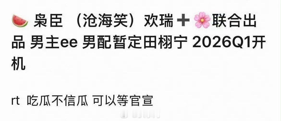 瓜主爆料田栩宁、成毅有望合作新剧《沧海笑》,预计明年年初开机……上一个被撕掉的是
