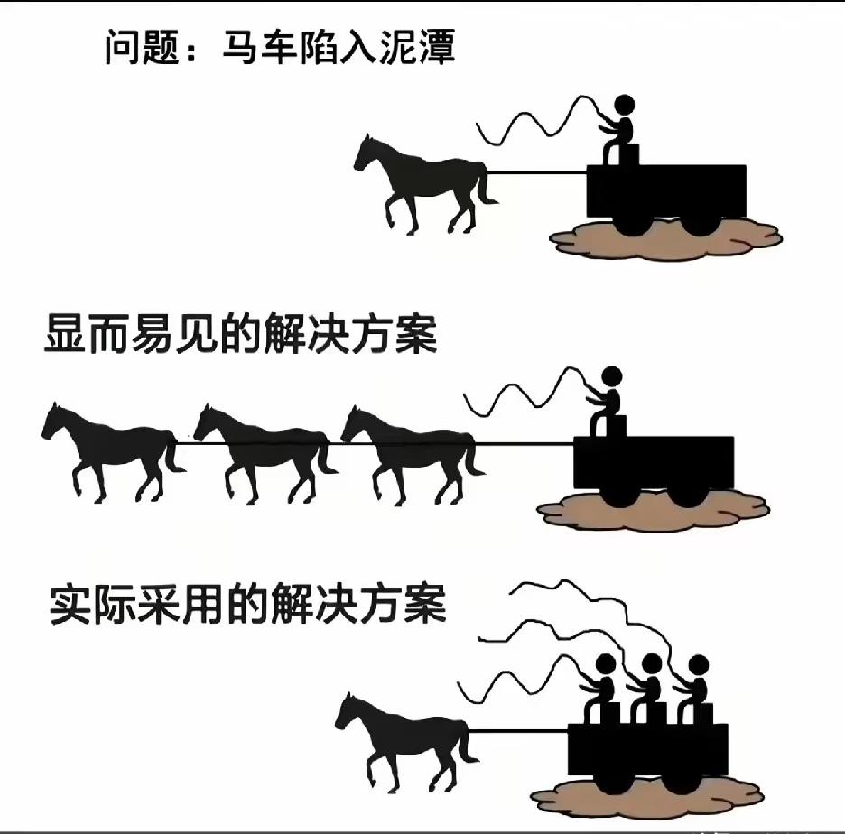问题显而易见,解决的办法却是南辕北辙。所以问题一直存在,解决问题的行动也一直在进行之中。与其扬汤止沸,何如釜底抽薪。这样的道理不是不懂,只是割舍不下屁股下的既得利益。自古以来,拔一毛而利天下,不为也,大有人在。