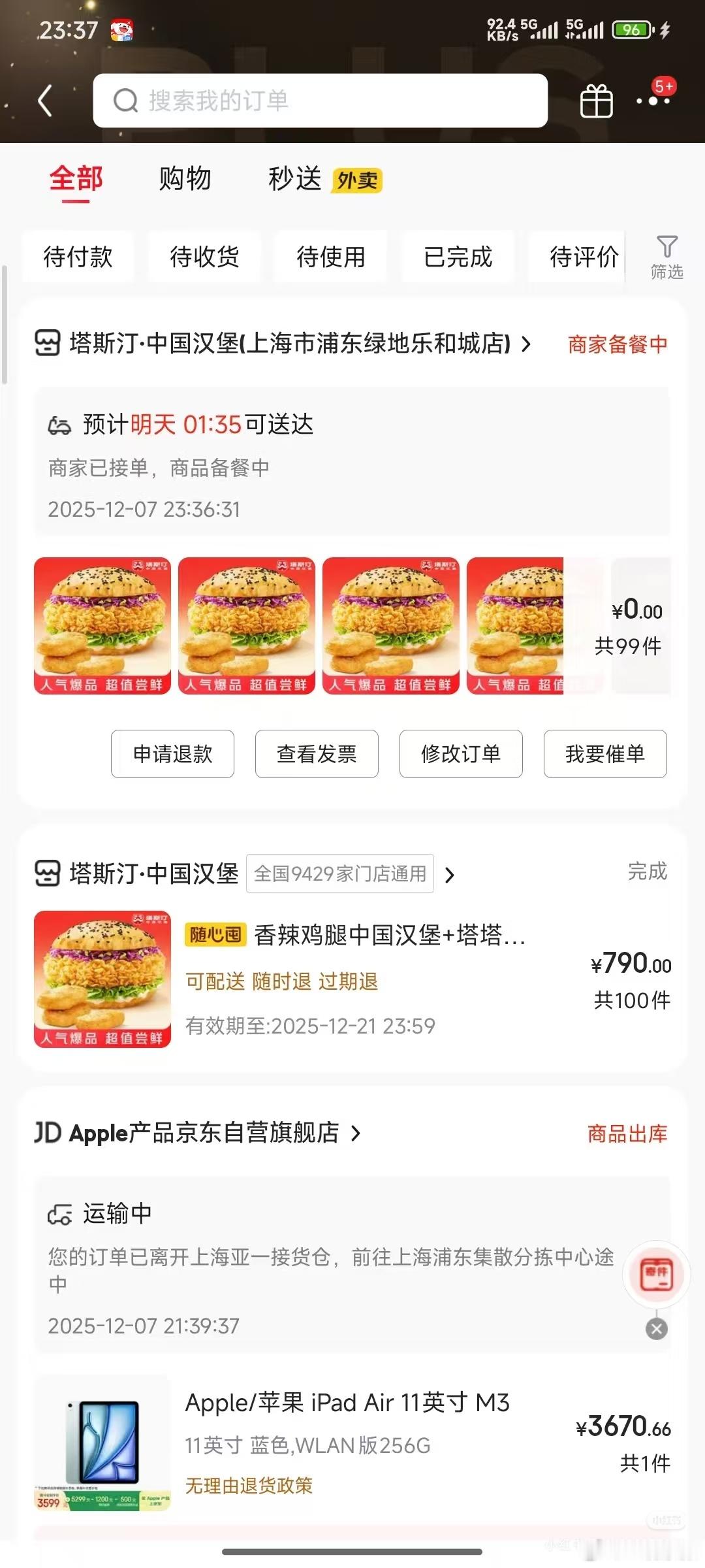 京东bug京东昨天晚上23点左右出现bug,退款券不退回,看到有些人买了99单,还有立即送的,吃得完吗?