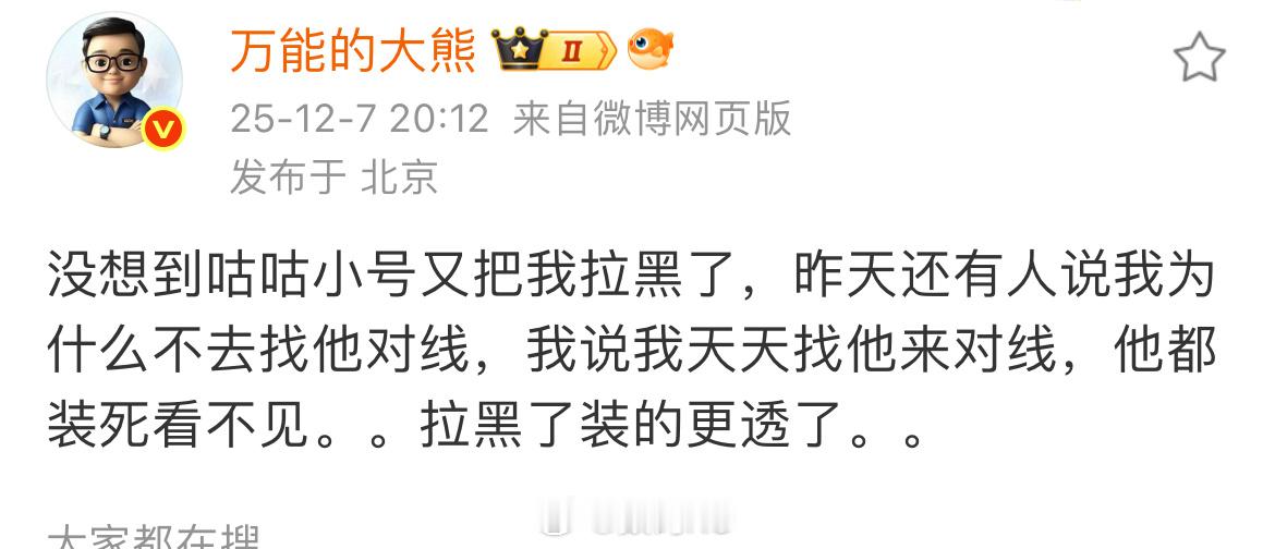 只能说万能的大熊被拉黑太正常了,回复他显得很弱智