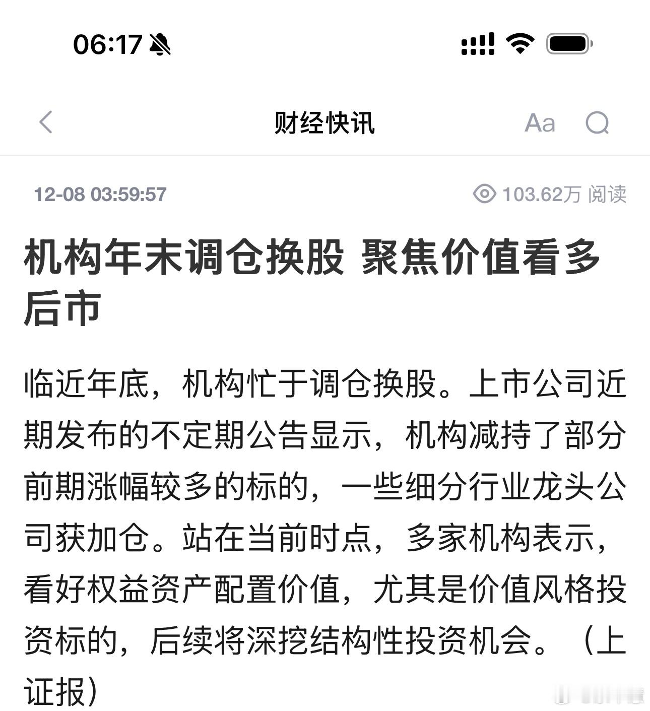 A股 机构年末大调仓!减持高涨股加仓龙头,集体看多价值资产后市!