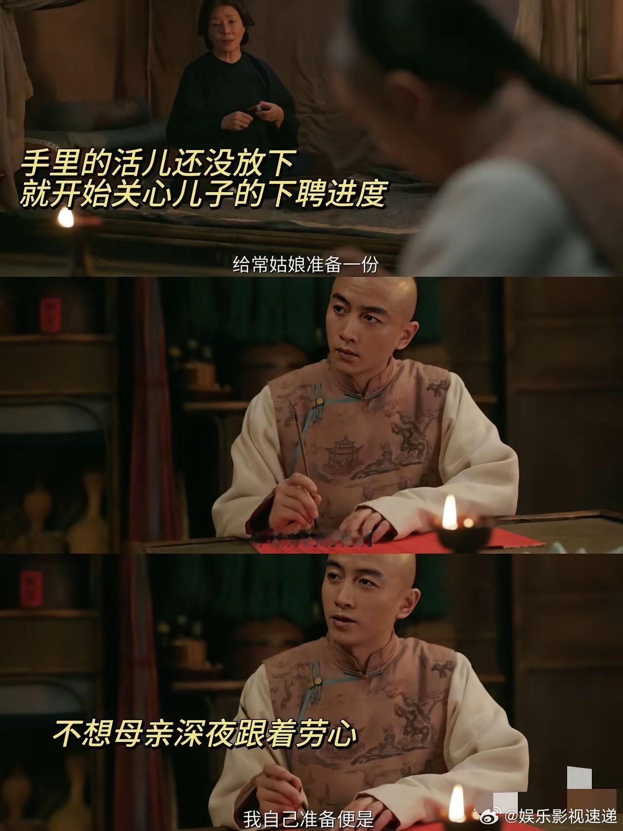 《大生意人》:谁懂现在才拿出传家宝,古母太会爱人了。现在终于明白为什么古平原为啥如此优秀了,因为他的母亲太睿智了。有一个细节,儿子与白依梅的婚事她没着急,她一直让儿子缓缓,因为她觉察白依梅的心没在儿子身上,所以也没拿出传家宝玉簪。这次古平原准备要给常玉儿下聘礼了,古母拿出压箱底的传家宝玉簪给儿媳做聘礼,还交代儿子多体谅玉儿。对于白依梅以后的处境她也分析的头头是道,很会劝慰儿子。