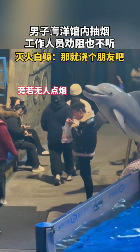 “干得漂亮!”近日,辽宁大连,一男子在海洋馆游玩时,竟旁若无人的抽起烟!工作人员发现后急忙制止,可是男子丝毫不听劝,就在这时,一旁的白鲸发现了这一状况,于是冲着男子吐了一口水,成功浇灭了烟。白鲸:你听不见吗? 在公共场合时,一定要遵守秩序,像随手乱丢垃圾、抽烟、大声喧哗,这种不文明的行为,是坚决不允许的,虽然工作人员看到后会提醒,但更多的还是要靠个人自觉。 据媒体12月7日的报道,当时男子在海洋馆里闲逛,由于太无聊,就点燃了一根香烟,全然忘记这是在公共场合而非自己家里了。 正在一旁疏导游客的工作人员看到后,立即走过来劝阻男子,可是男子不仅没掐灭,还当着工作人员的面抽了起来! 工作人员只能继续耐心劝导他,不料,池中的白鲸也注意到了这边的事情。 白鲸可是非常聪明的动物,能够听懂饲养员的话,自然知道公共场合不能抽烟,于是它含住满满一口海水,随后快速游了过来,精准的浇在了男子头上,成功将烟浇灭。 网友看后表示,果然有些人的素质连动物都不如,在公共场合抽烟,真是太缺德了,这次就给他好好长记性,让他下次再也不敢了! 信息来源:《我妈喊你掐了,你耳朵聋吗?男子海洋馆内抽烟且不听劝阻,白鲸直接从背后浇了个透。》中国新闻社
