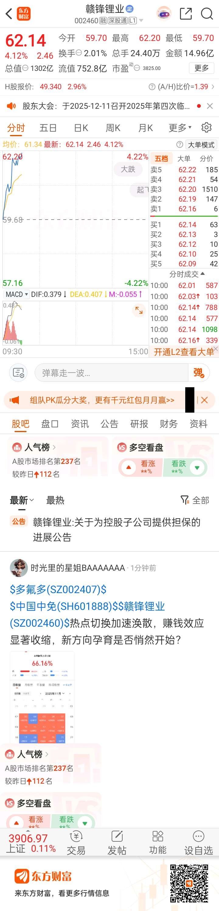 大赣锋,继续冲东方财富赣锋锂业(002460)东方财富