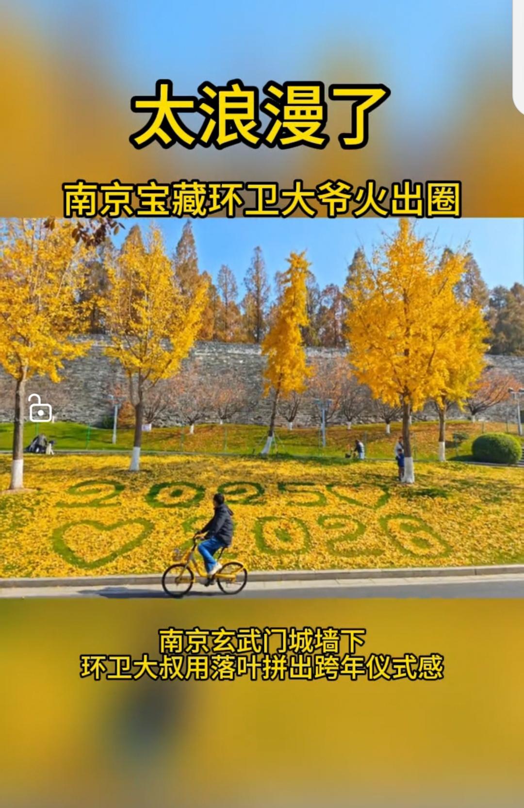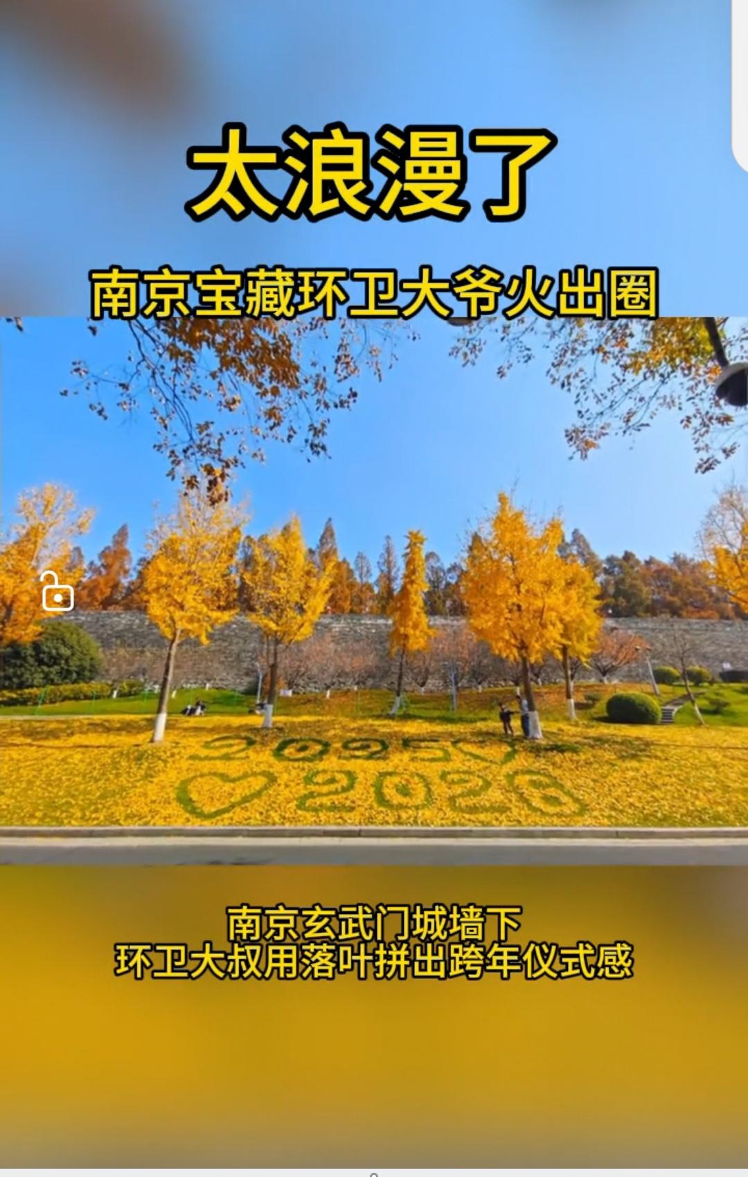 浪漫无处不在:南京环卫大叔用落叶拼出跨年仪式感
